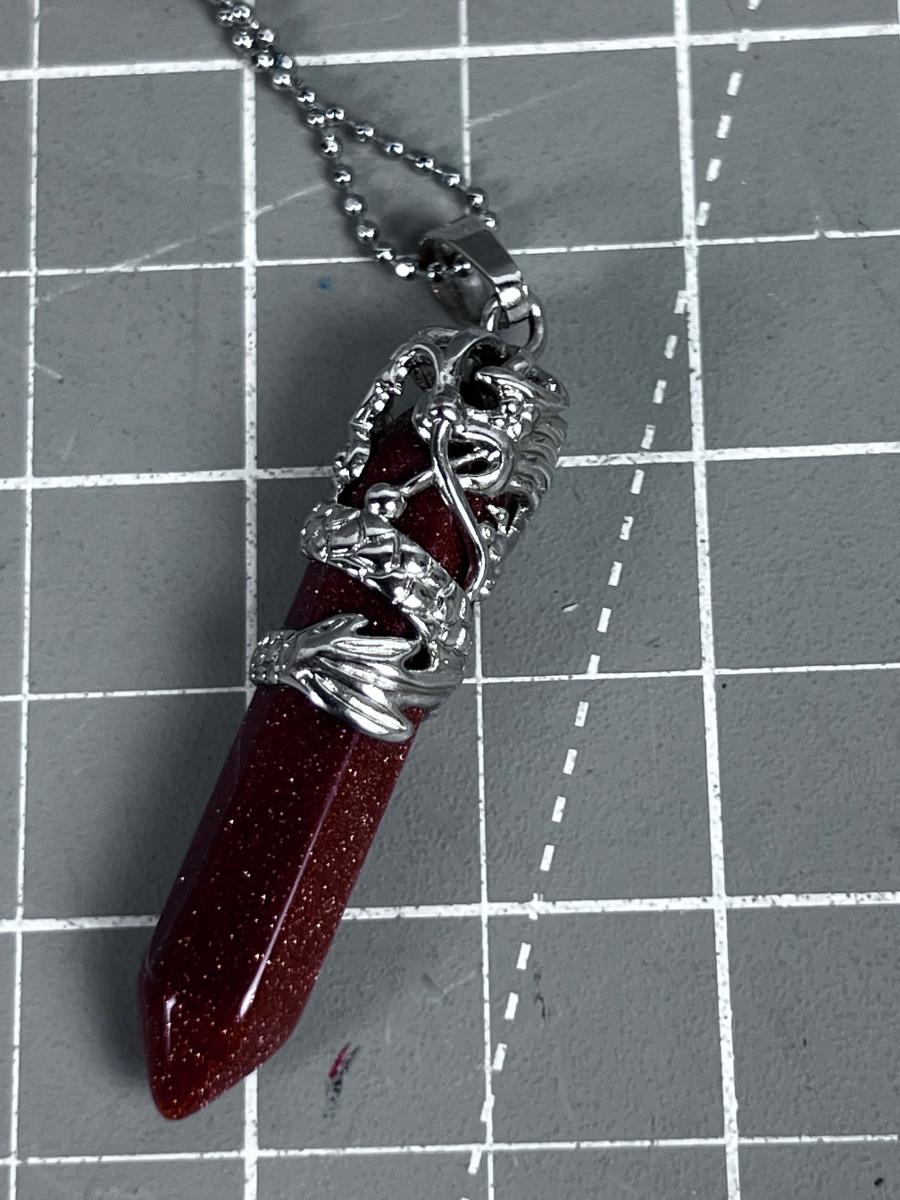Gold Stone Rust Colored Pointer Crystal in a Dragon Pendant