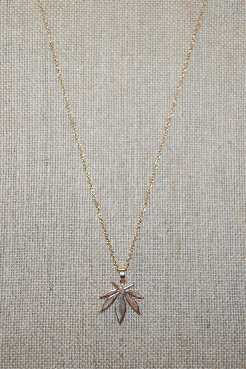 Gold Style Leaf PENDANT (1" x 1" ) on a Gold Tone Necklace Chain 17" L
