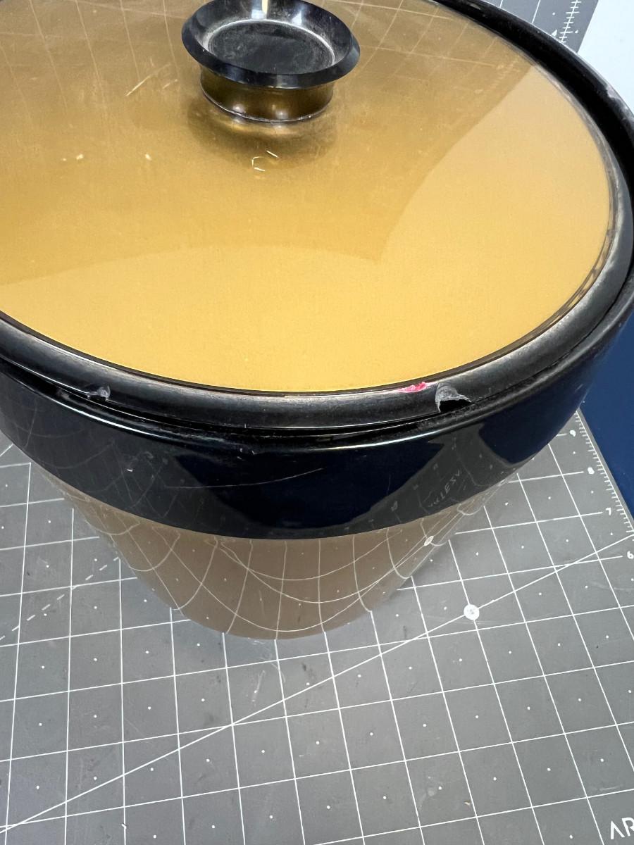 Crack on bottom and chip on lid BUT still AWESOME