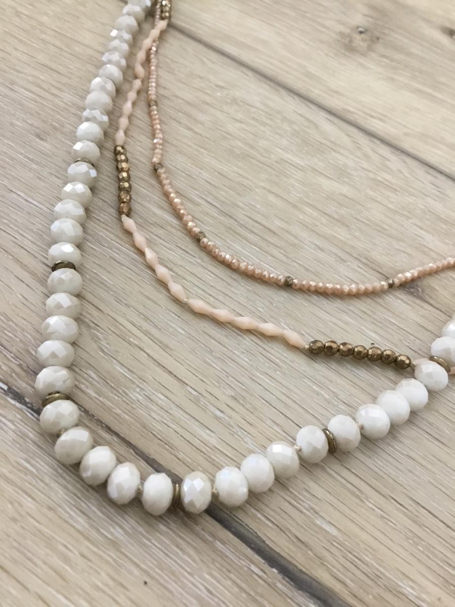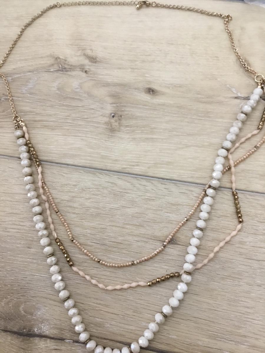 Gold tone 3 layer beaded fashion necklace