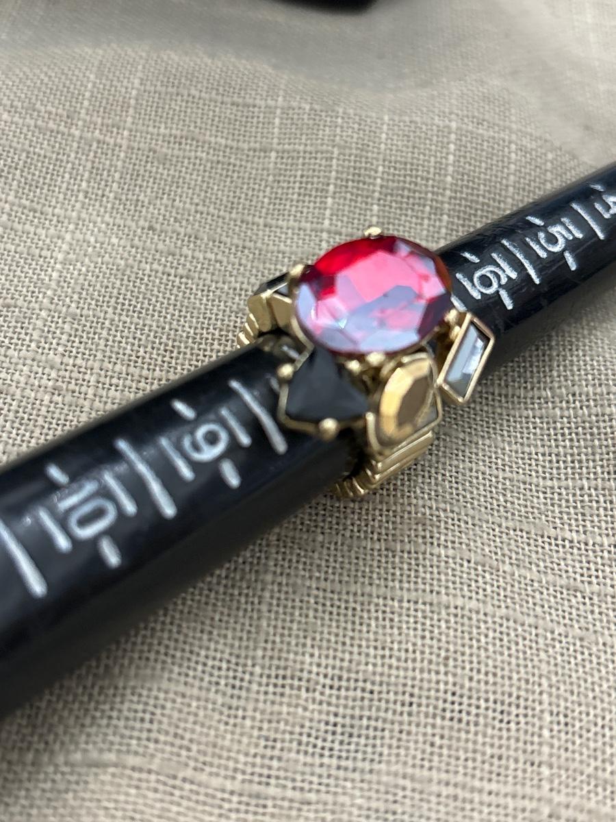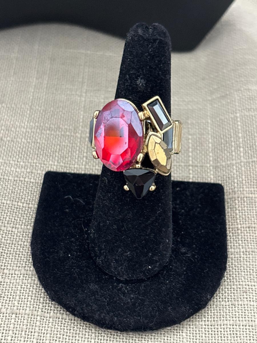 Gold tone adjustable black and red ring