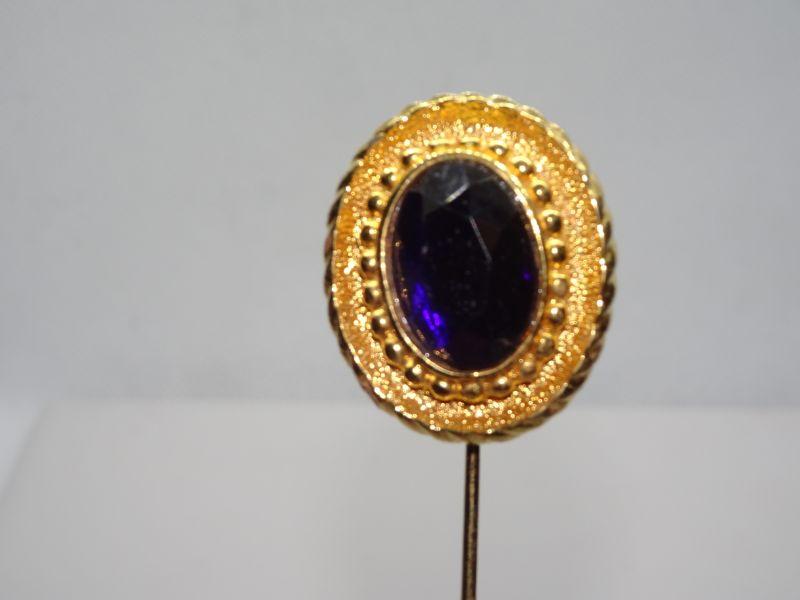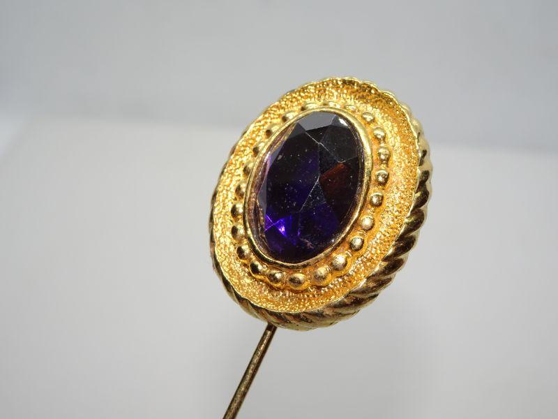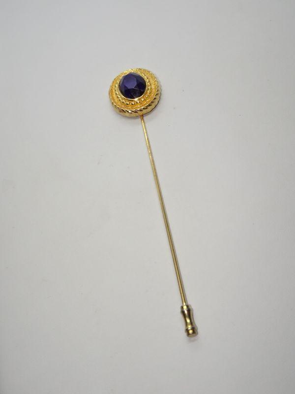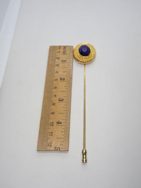 Gold Tone Amethyst Color Purple Ladies Stick Pin, Large Hat Pin