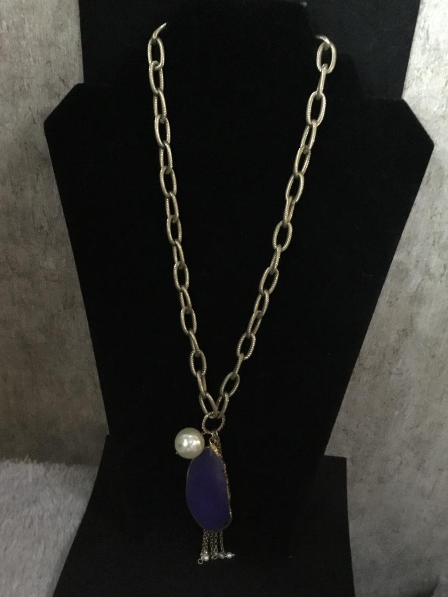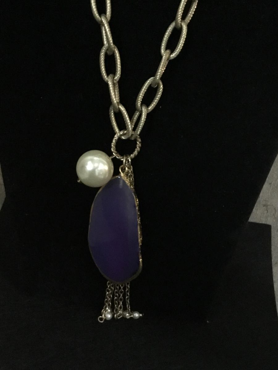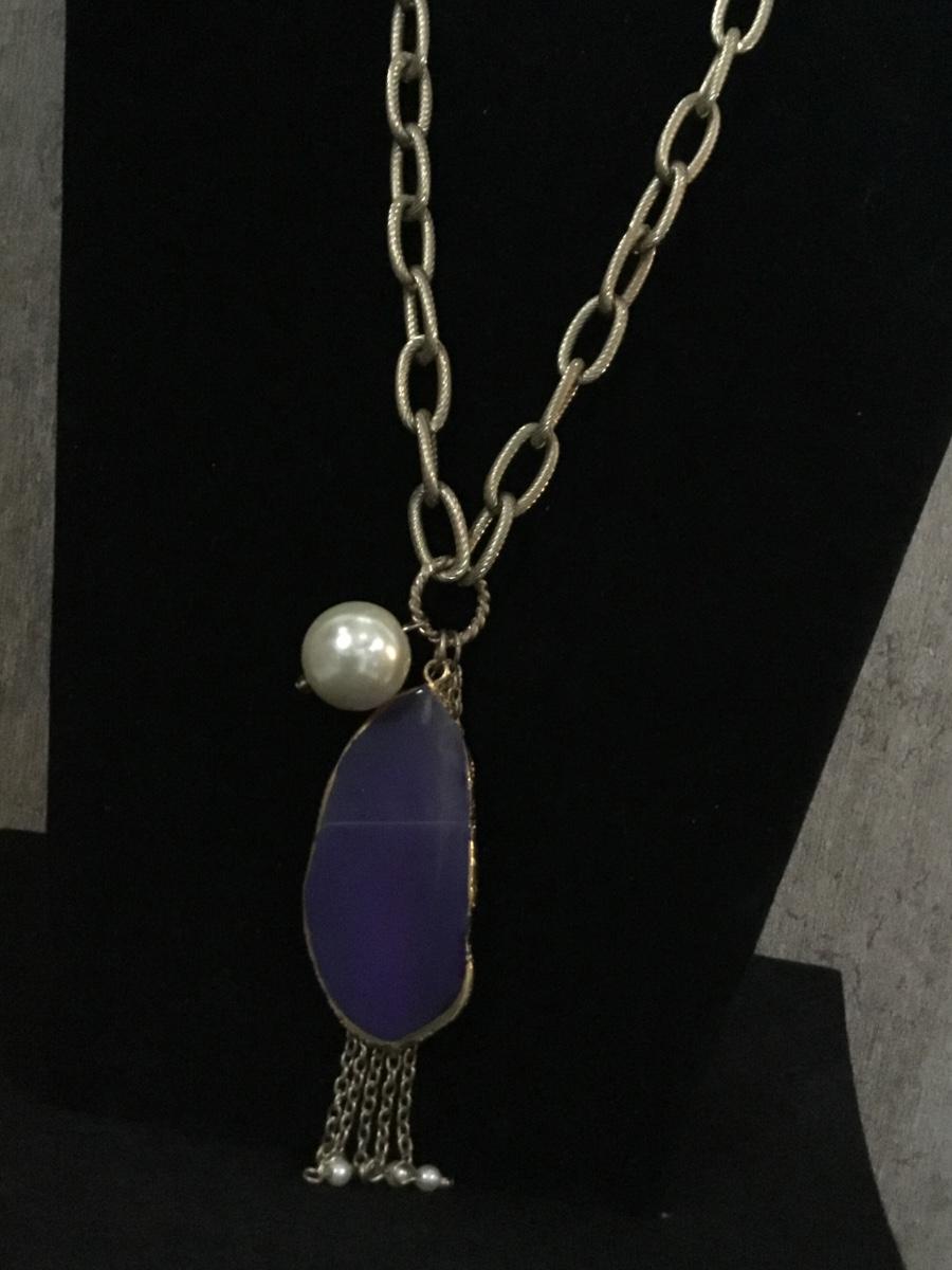 Gold tone Amethyst glass stone crystal type tassel chain like necklace