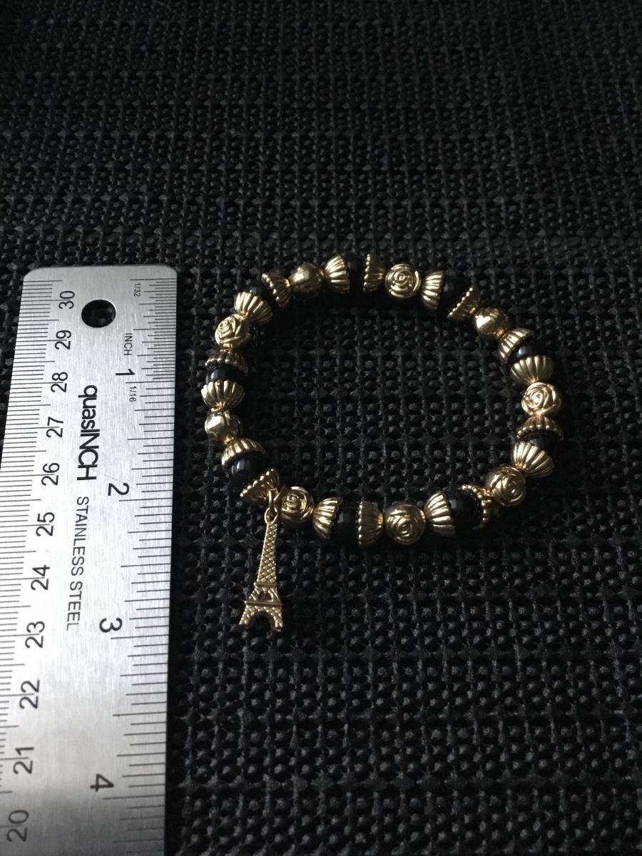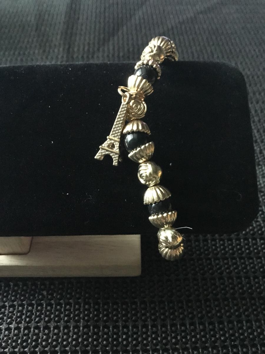 Gold tone and black beaded Eiffel Tower charm bracelet