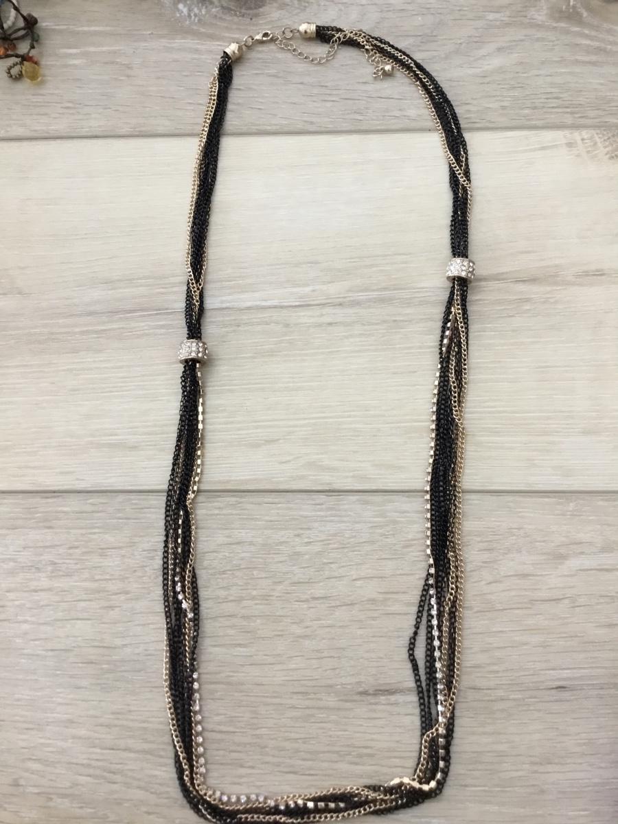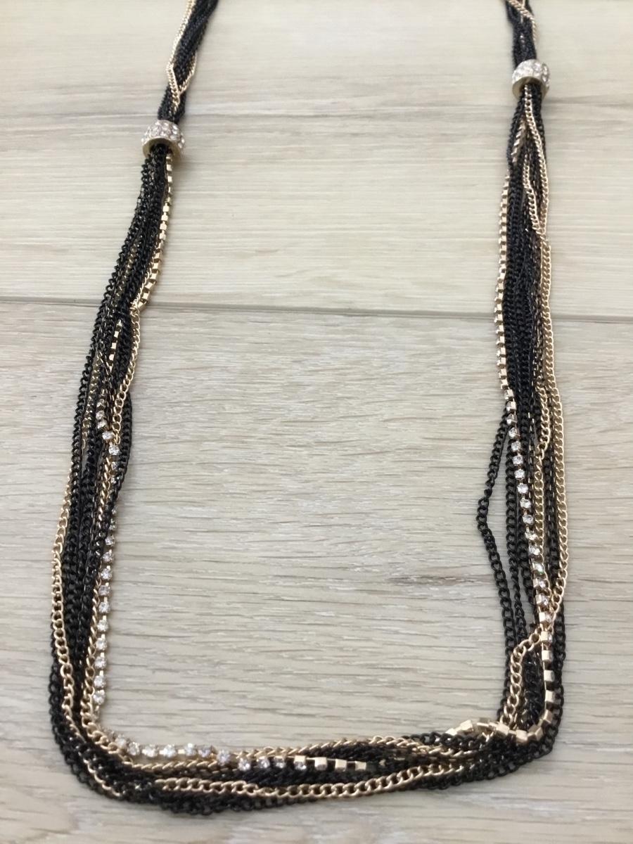 Gold tone and black long multi layers fashion necklace