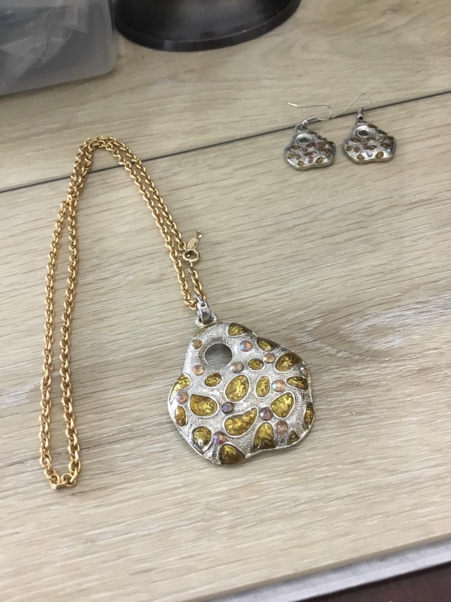 Gold tone and silver tone marked necklace and earring set