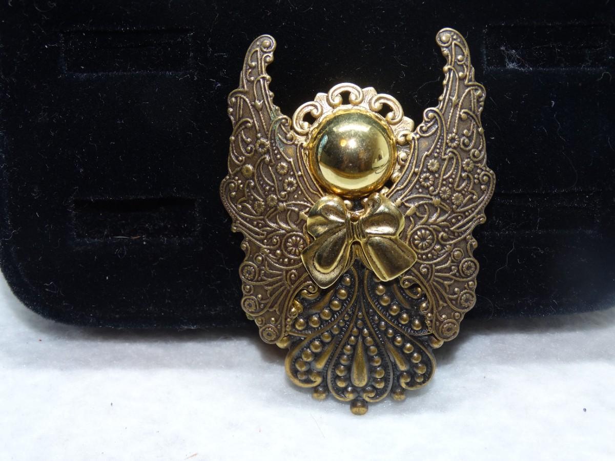 Gold Tone Angel Pin, Christmas Victorian Angel