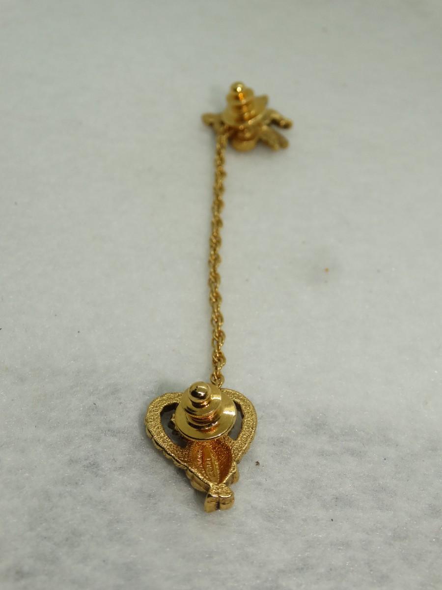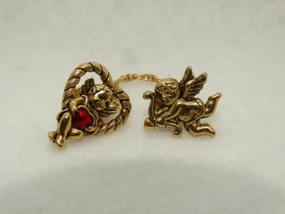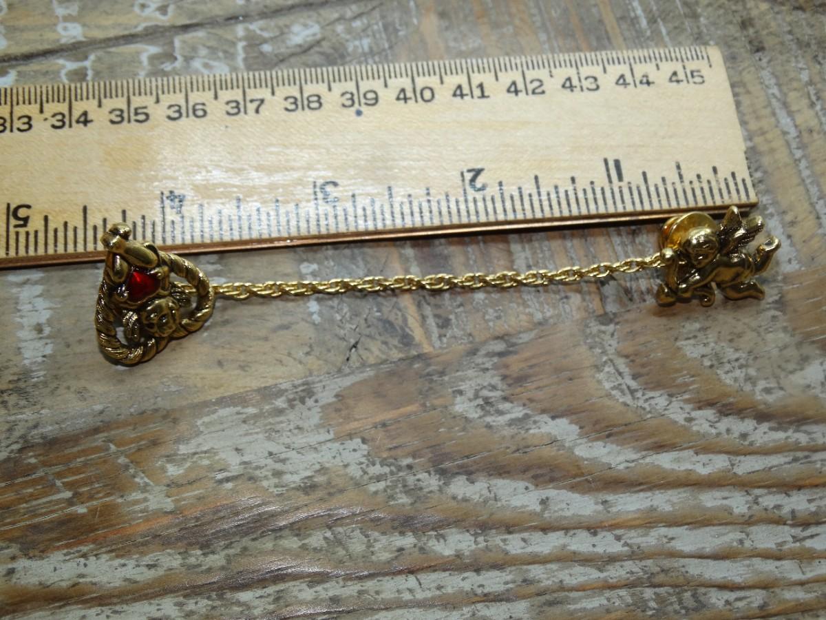 Gold Tone Angel Sweater Tie Tack, Red Rhinestone