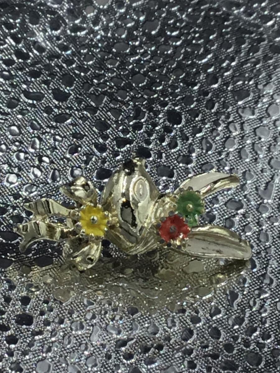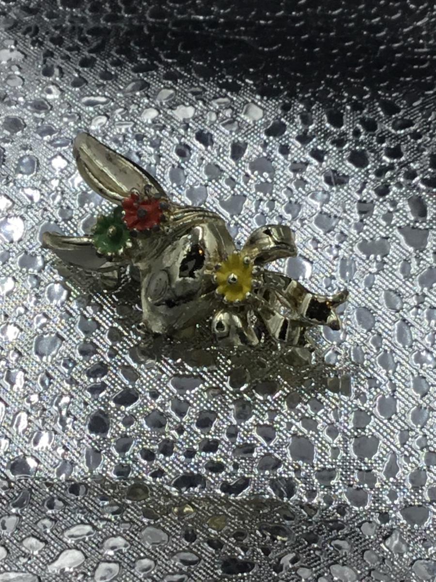 Gold tone animal head with flowers vintage pin