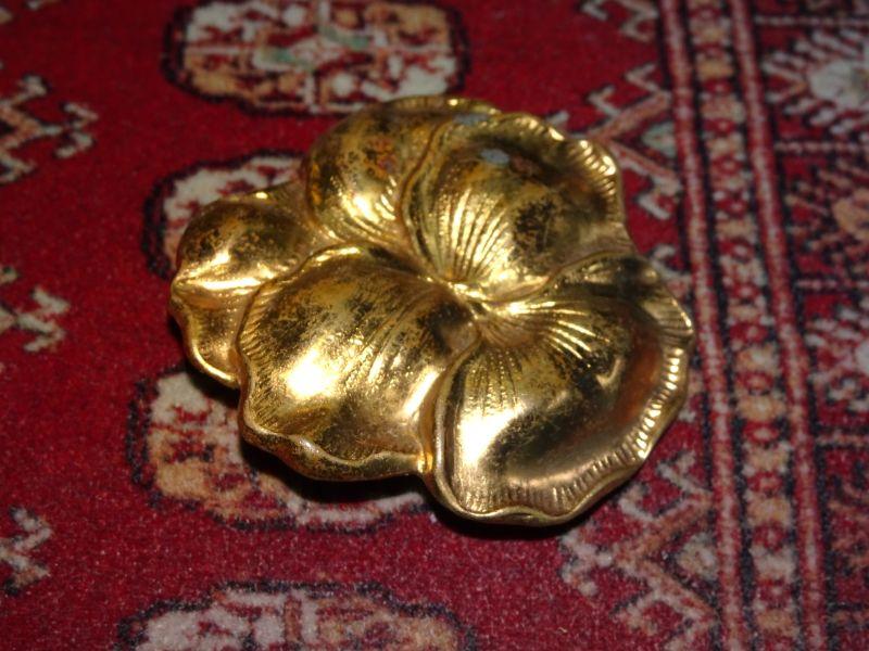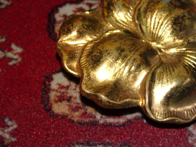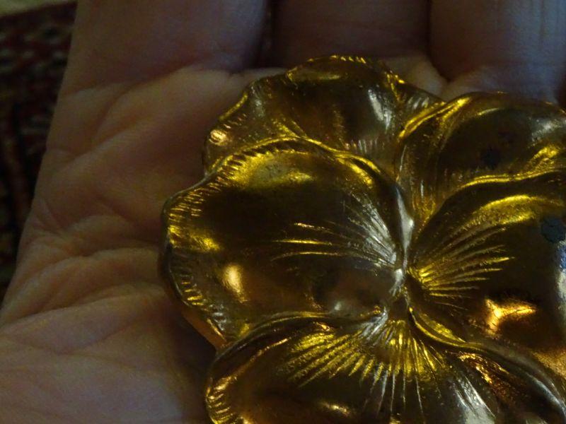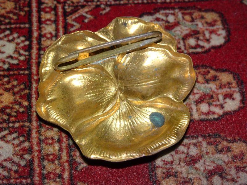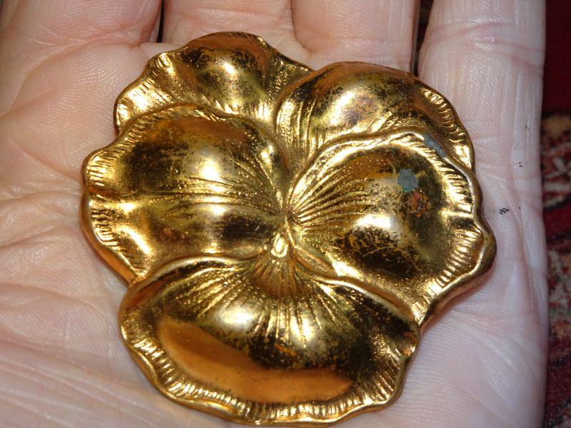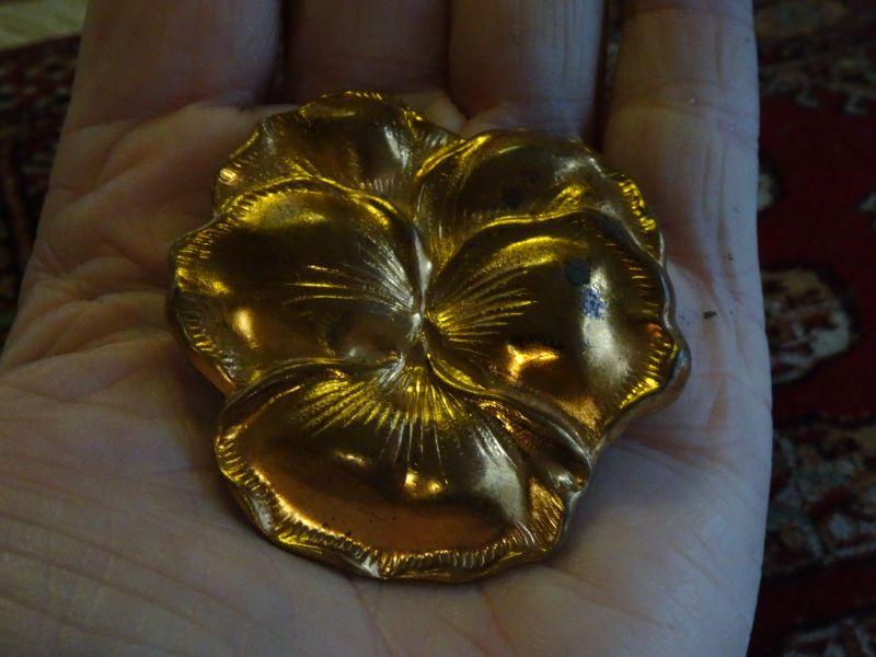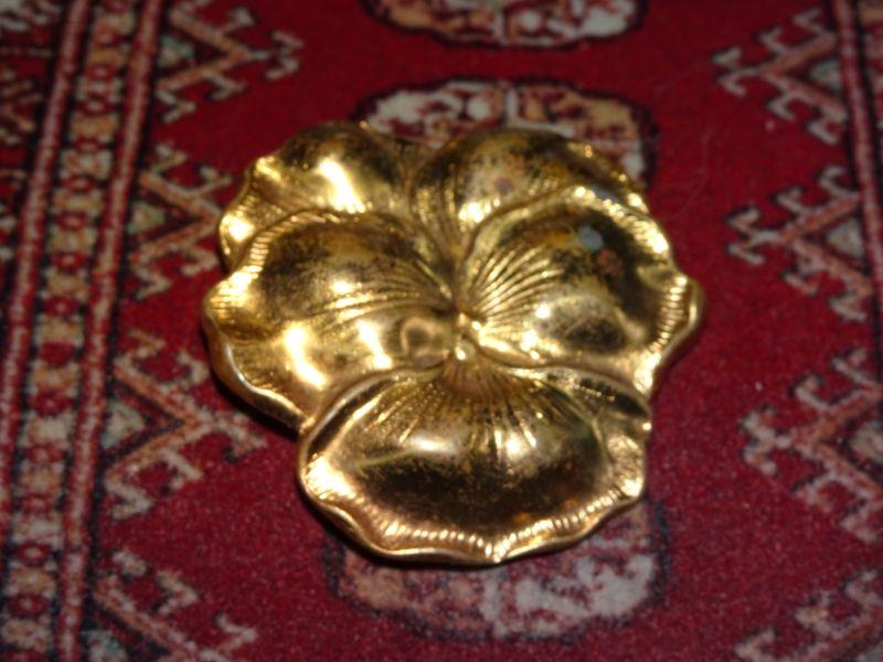 Gold Tone Art Nouveau Style Pansy Flower Pin Brooch