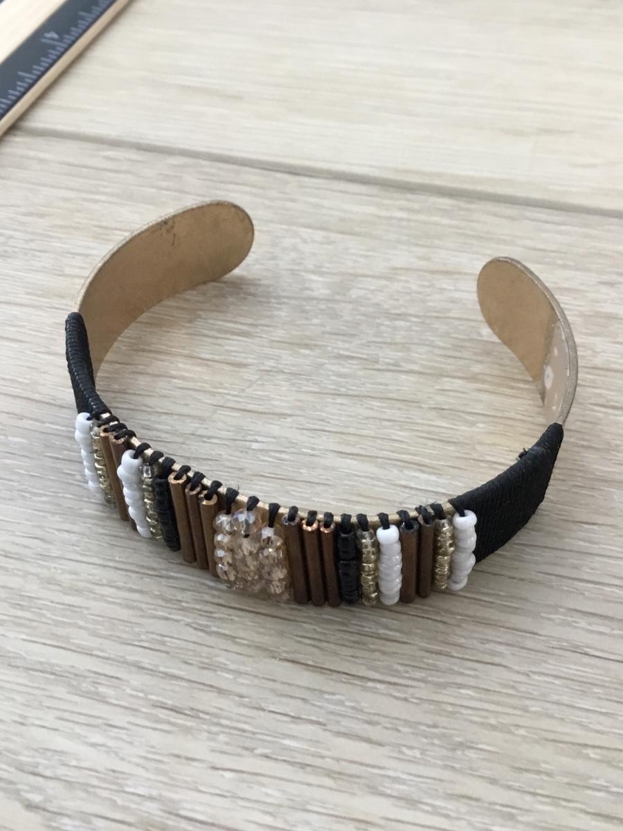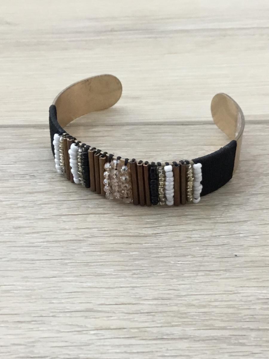 Gold tone beaded center cuff bracelet