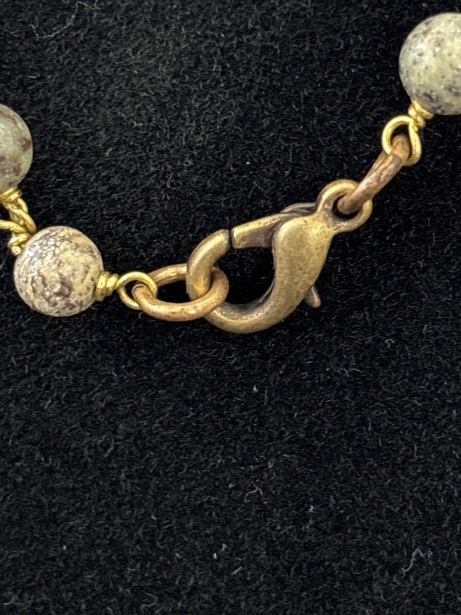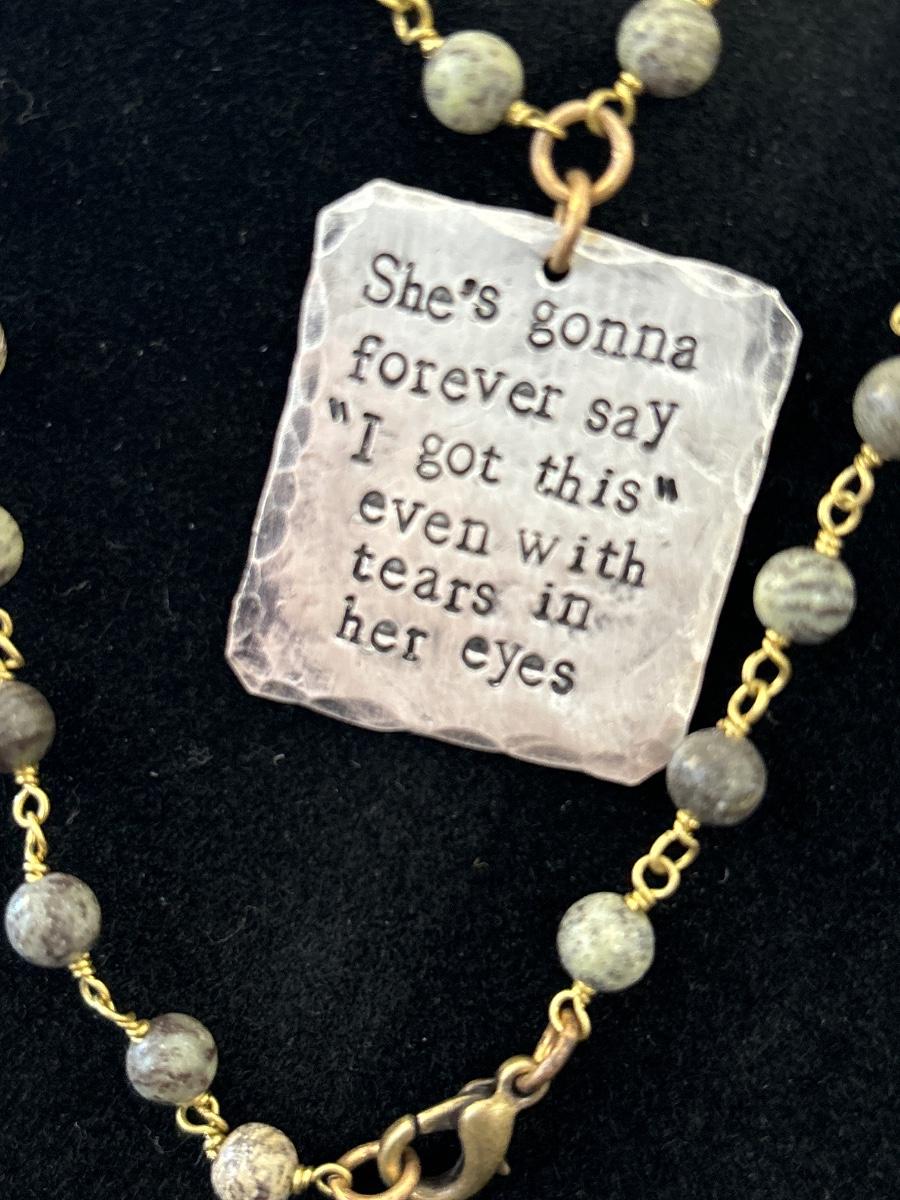 Gold tone beaded necklace with saying pendant
