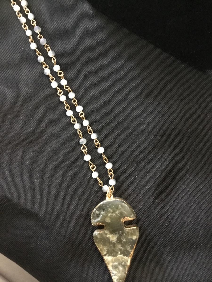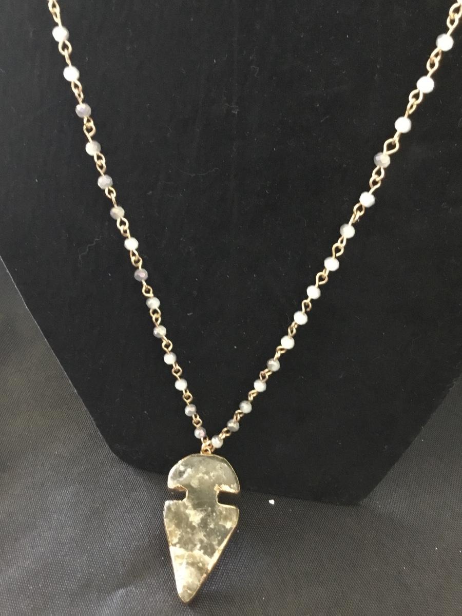 Gold tone beaded necklace with pendant