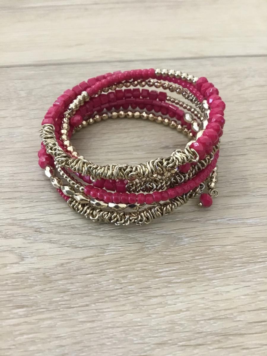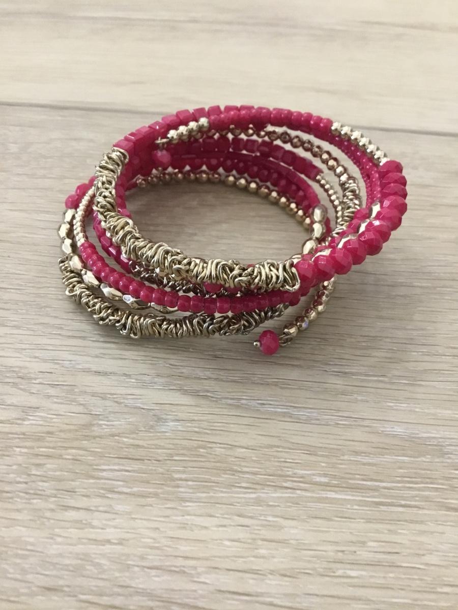 Gold tone beaded wire adjustable bracelet
