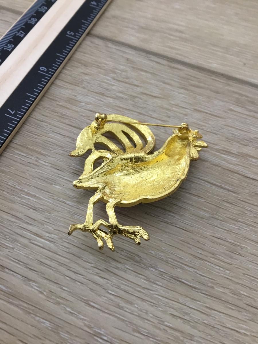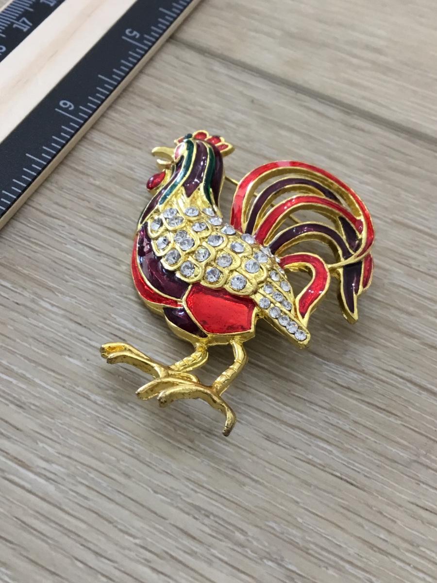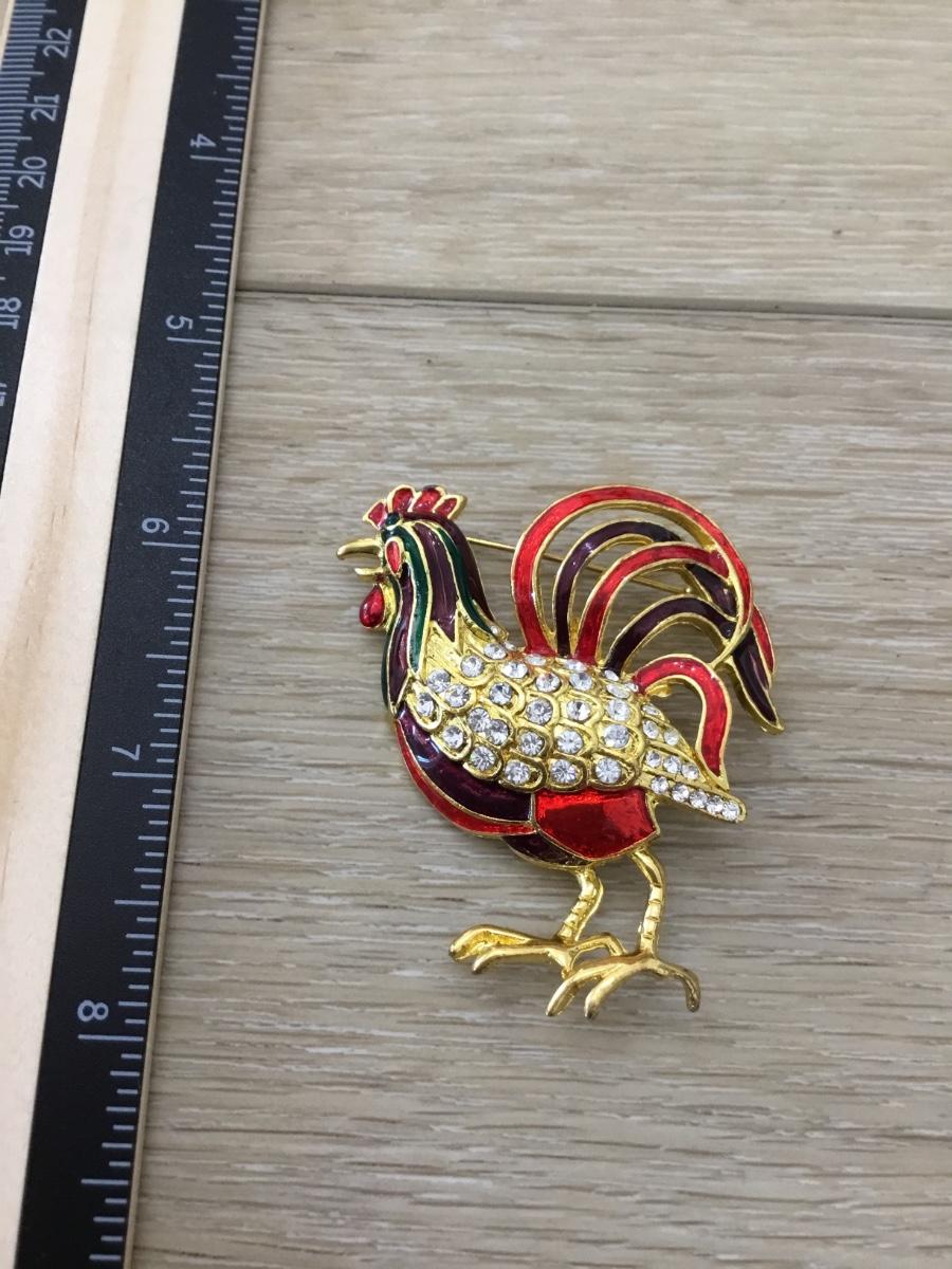 Gold tone black and red rhinestone rooster pin