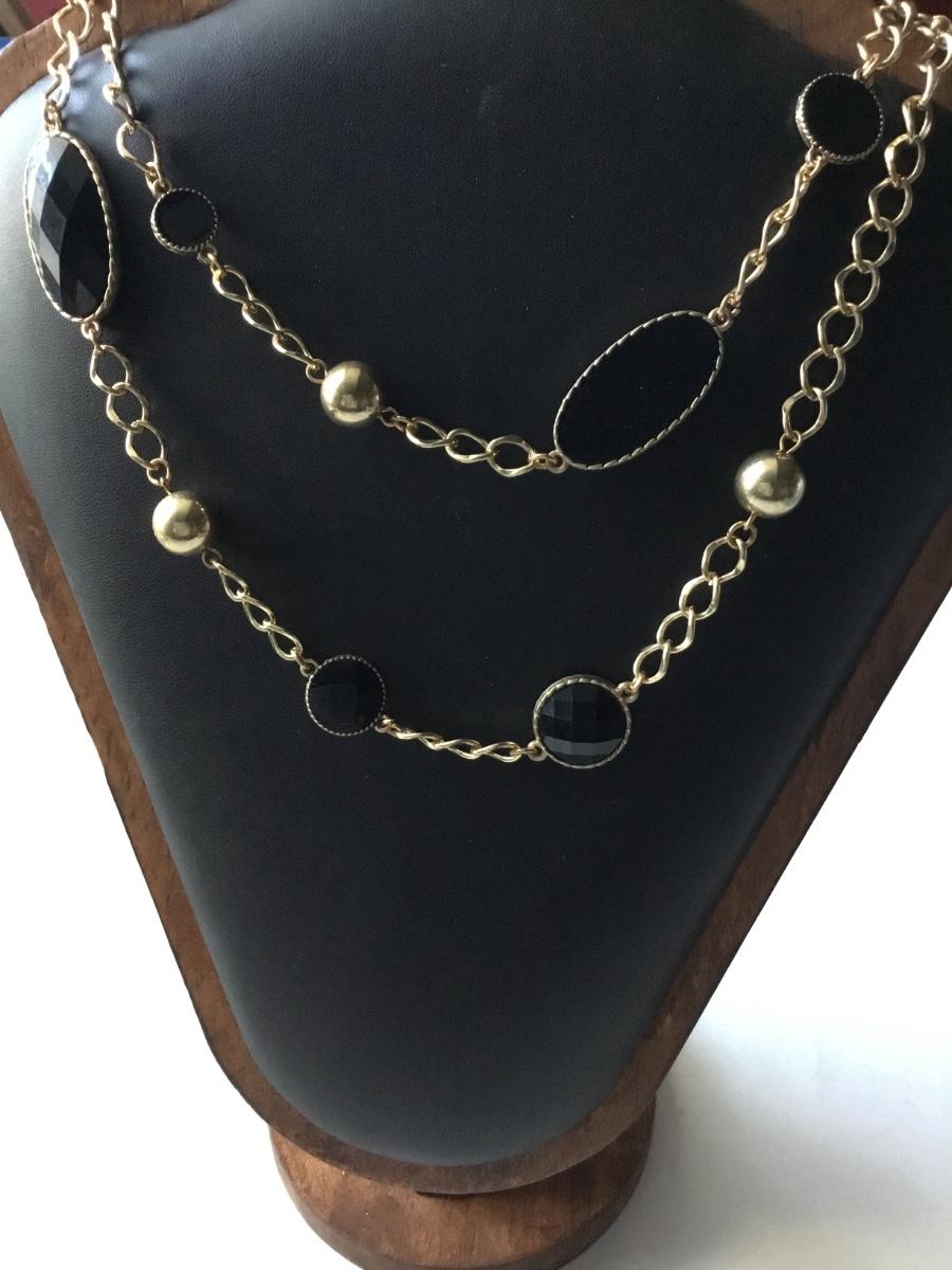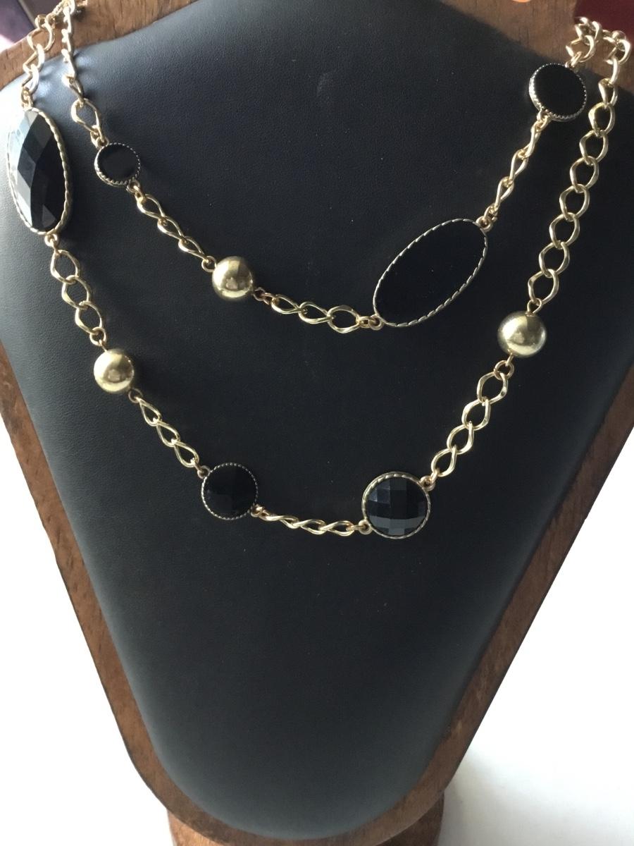 Gold tone black fashion necklace