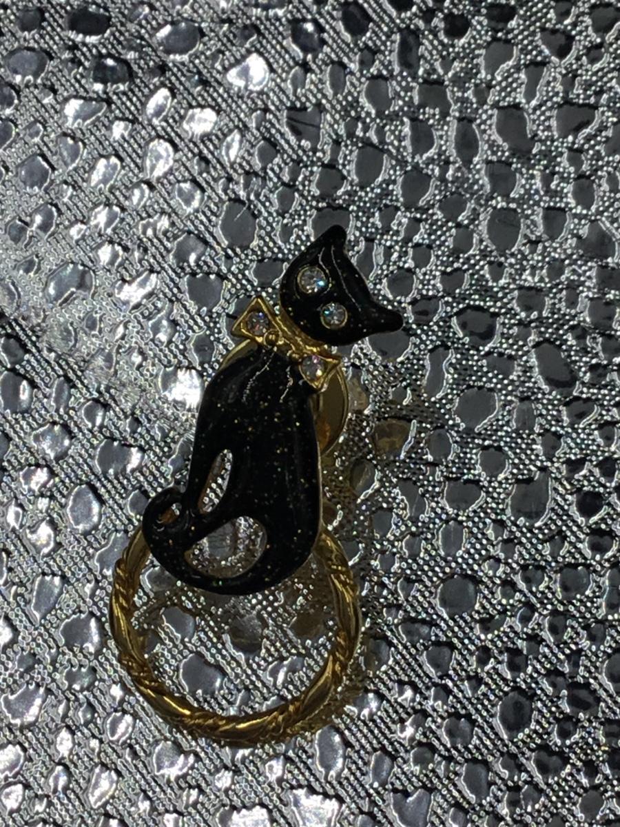Gold tone black shiny cat pin