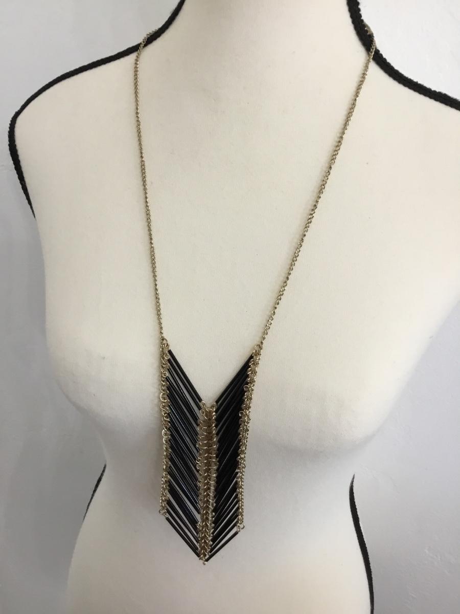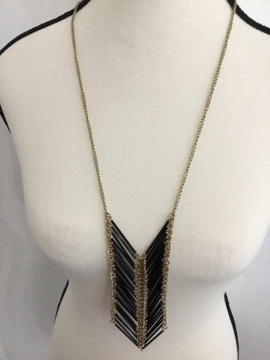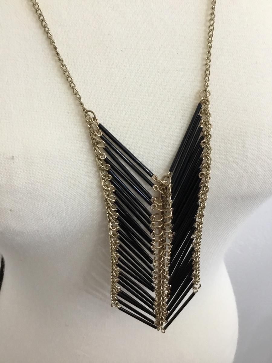 Gold tone black tassel necklace