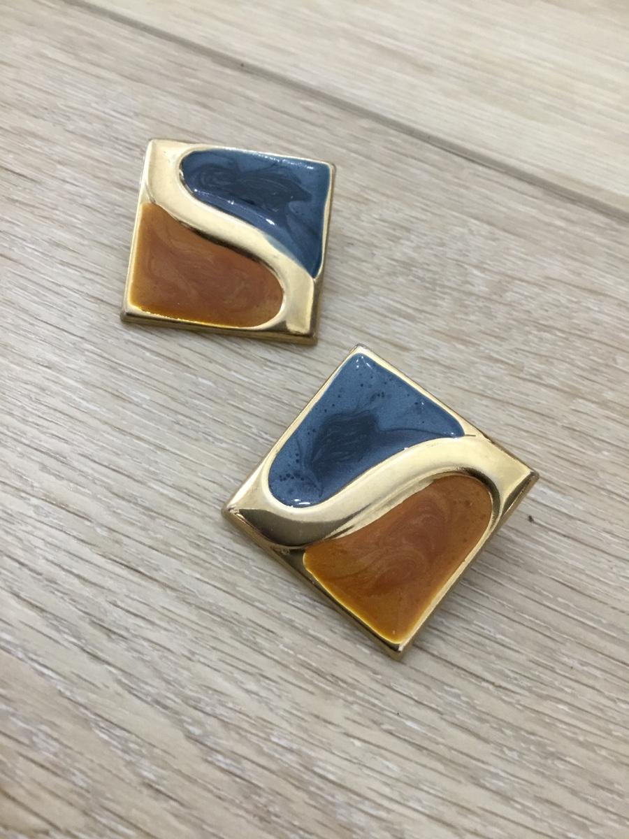 Gold tone blue and orange vintage earrings