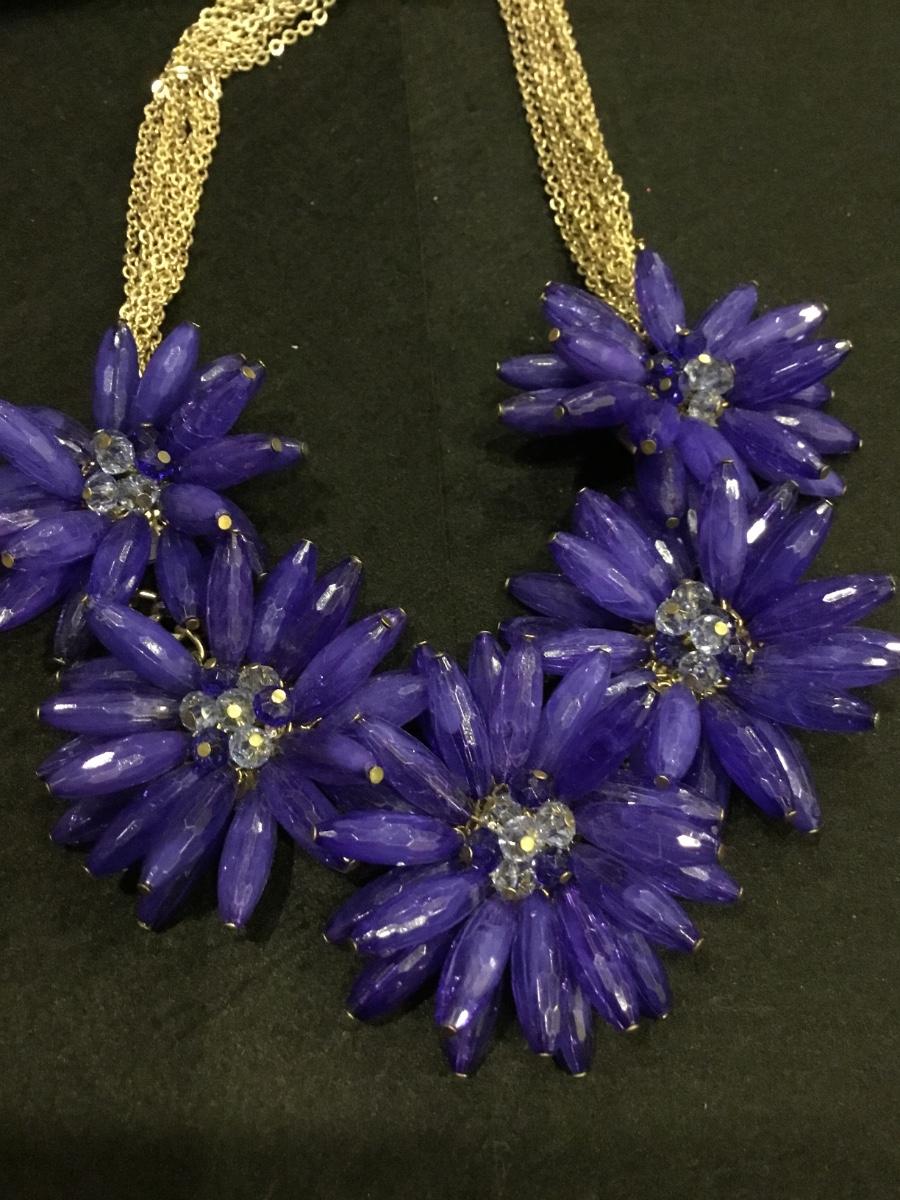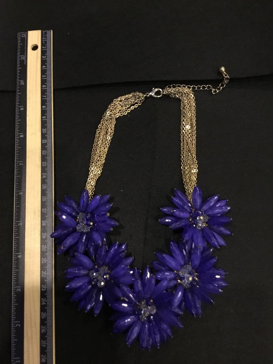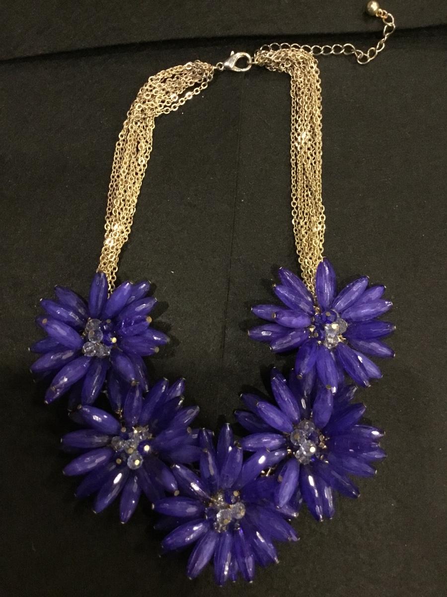Gold tone blue floral statement necklace