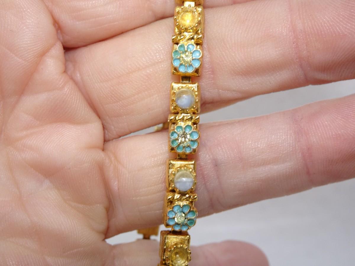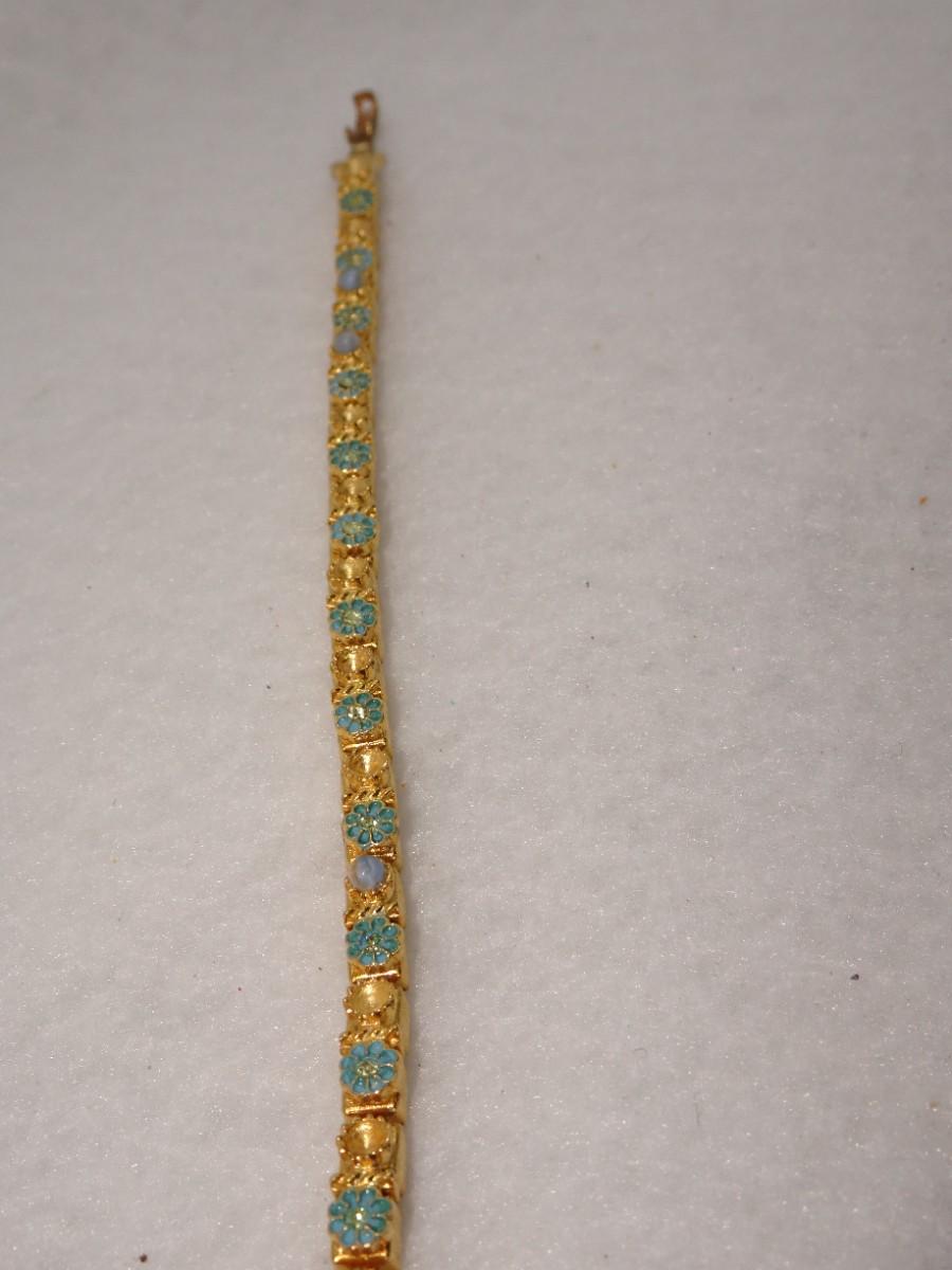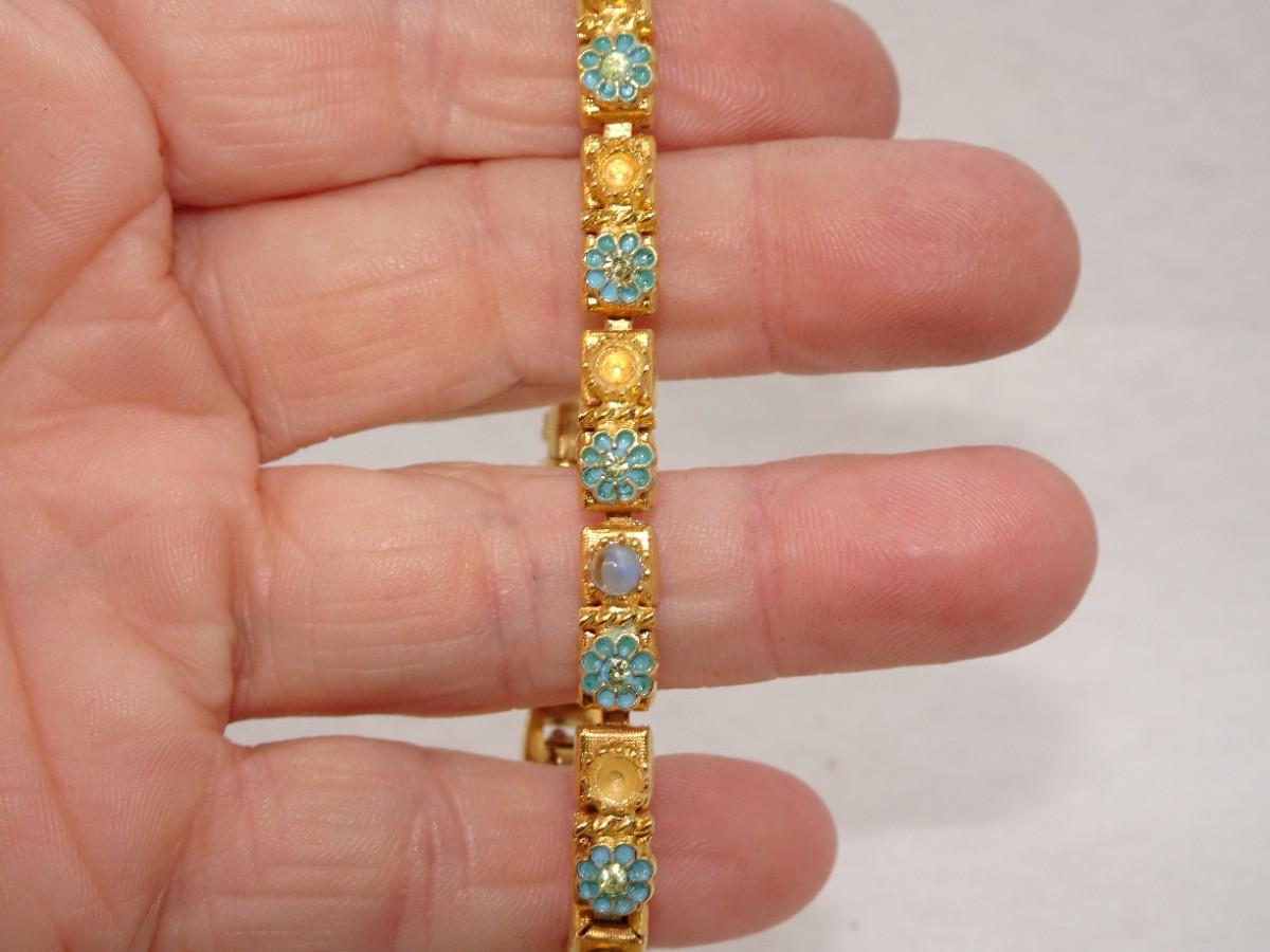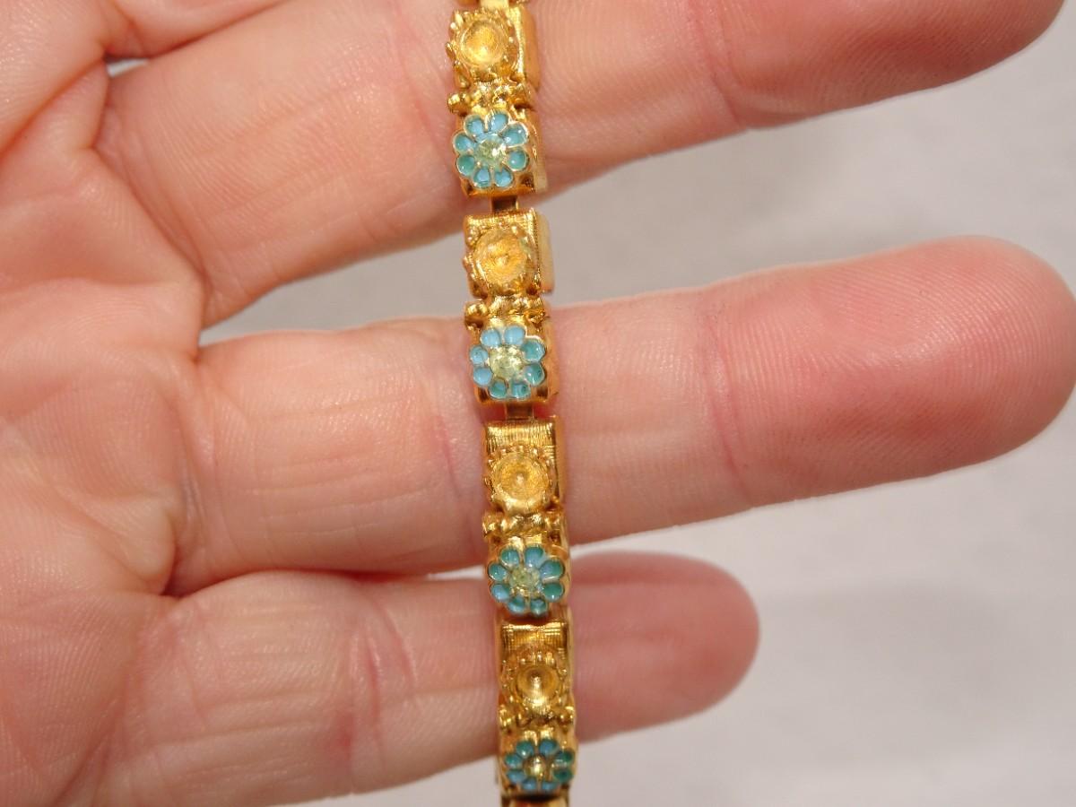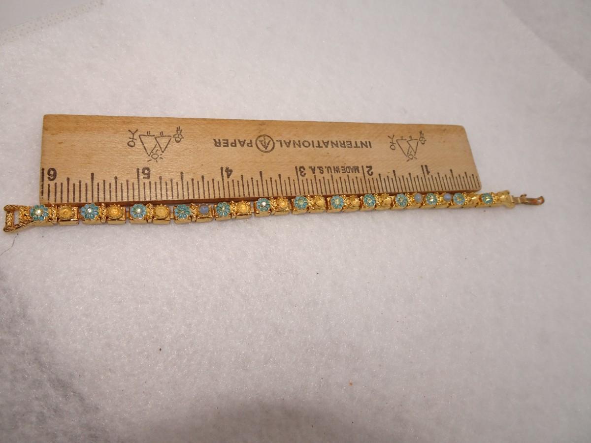 Gold Tone Blue Flower Bracelet, Dainty, Missing Pearls