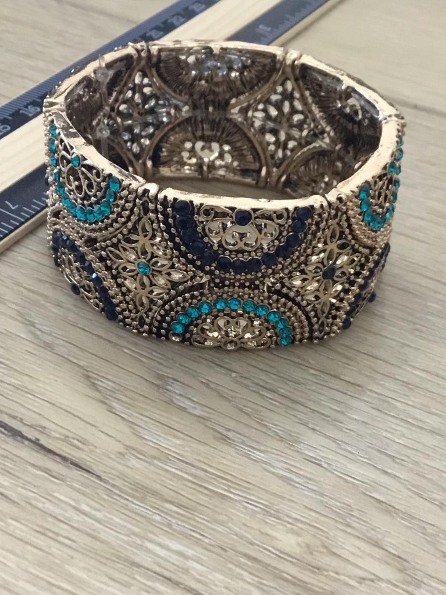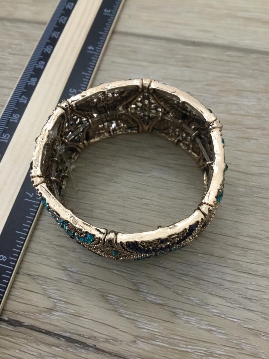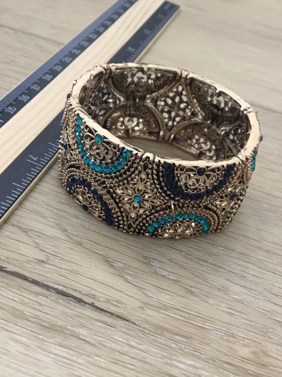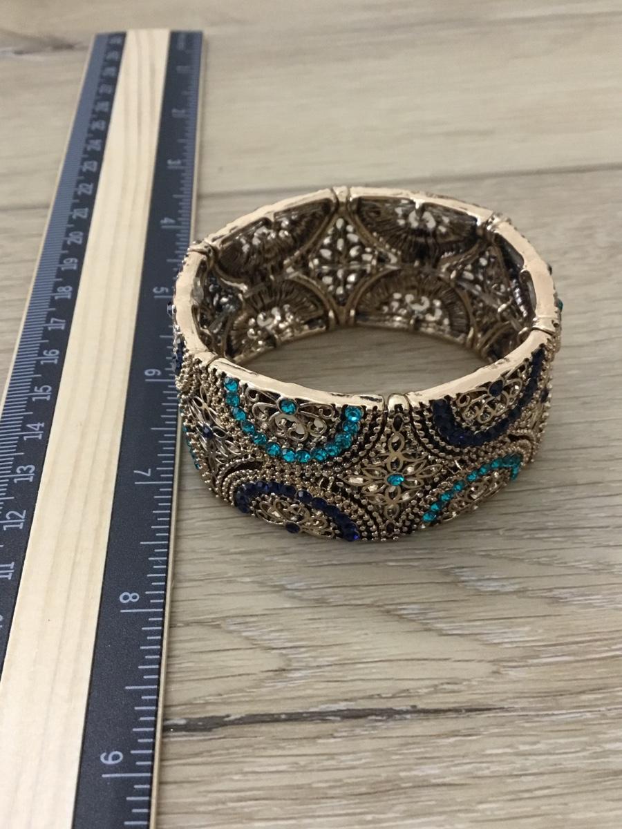 Gold tone blue rhinestone designed stretchy fashion bracelet