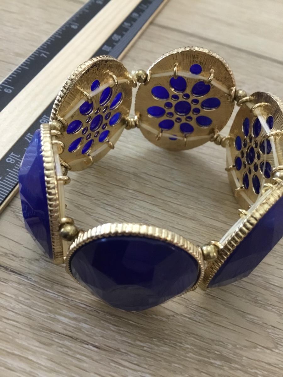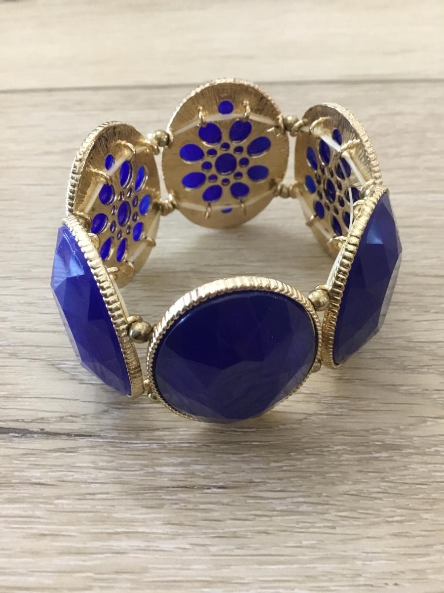 Gold tone blue stretchy bracelet