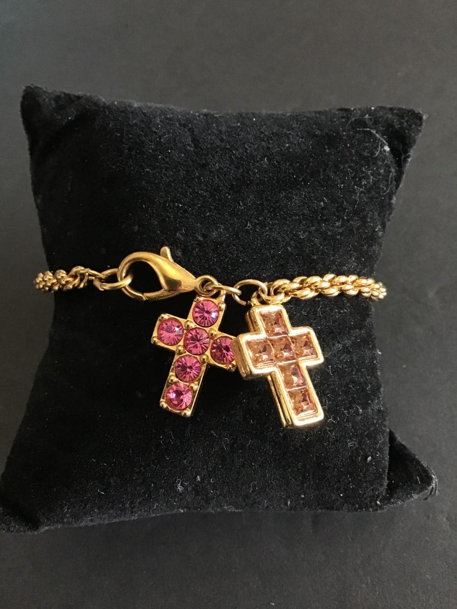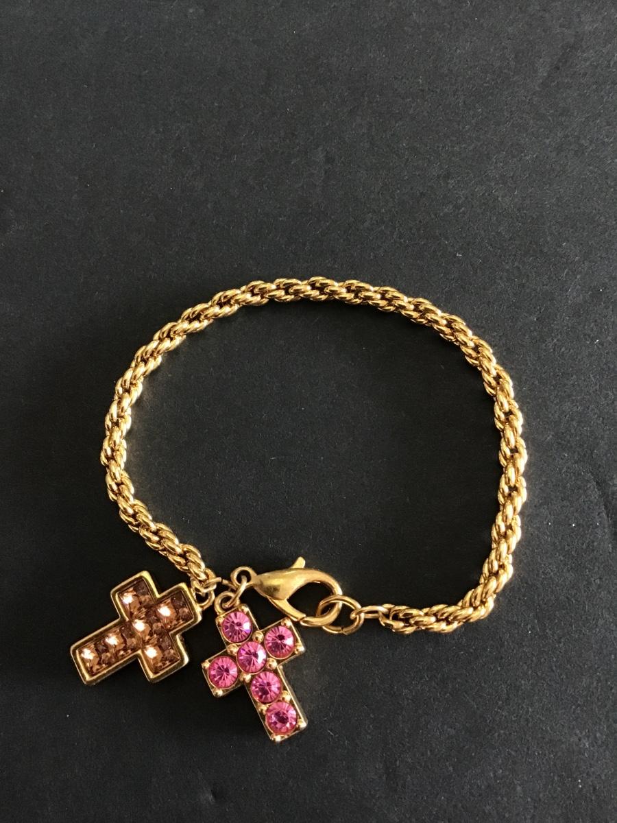 Gold tone bracelet with cute cross charms