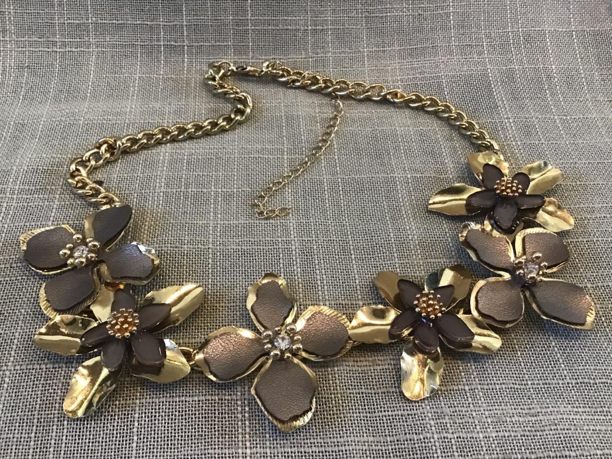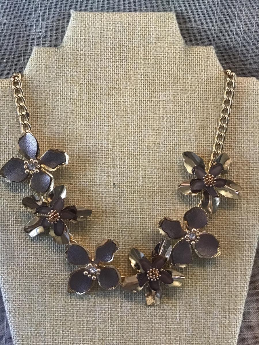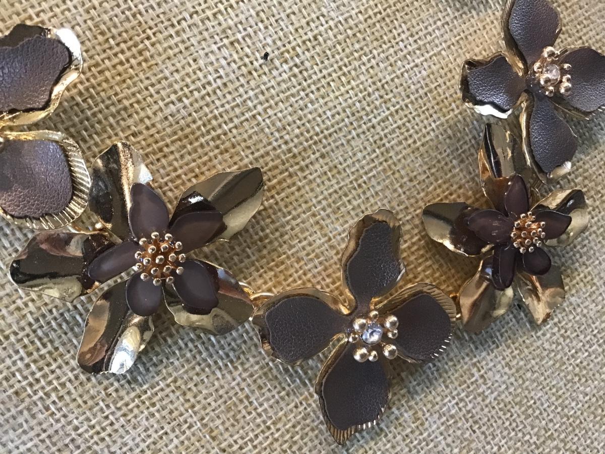 Gold Tone Brown Accent Flower