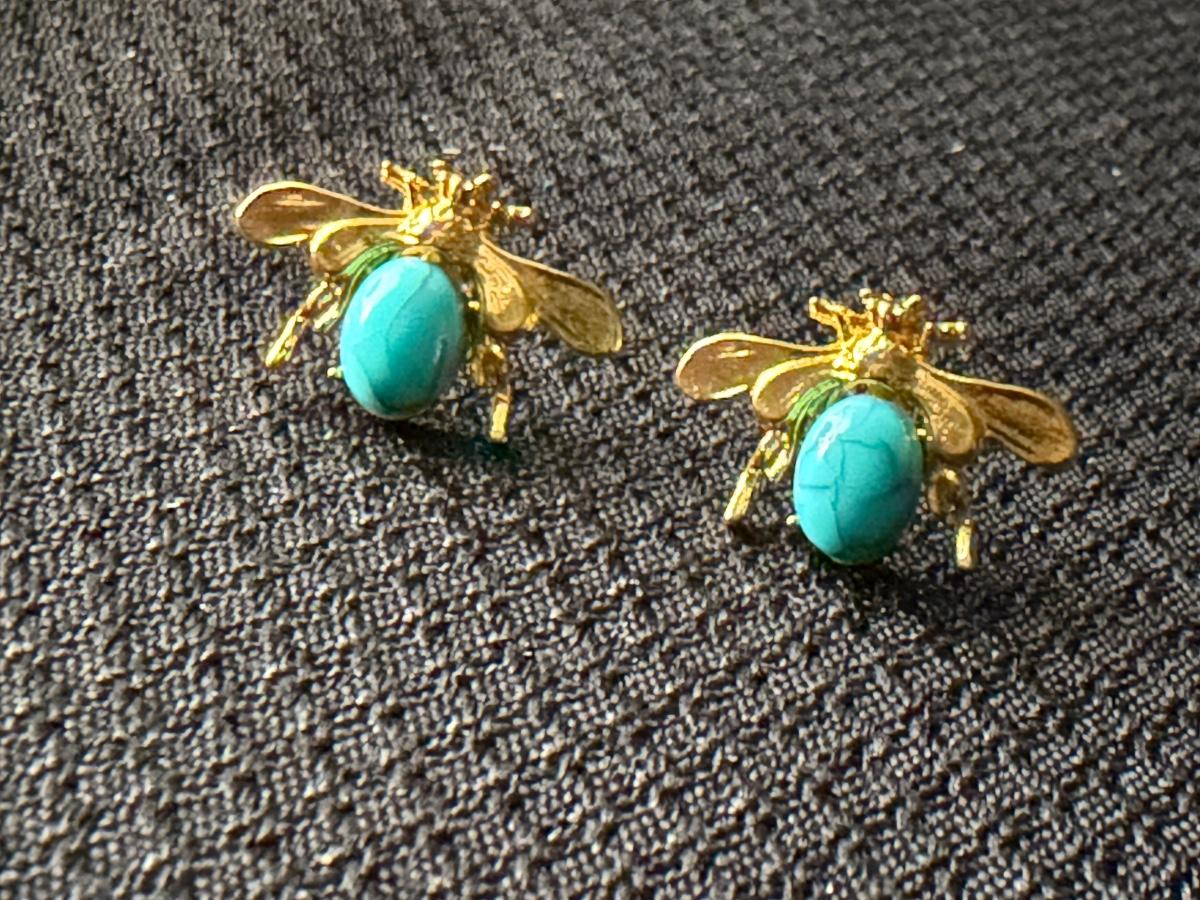 Gold tone bug stud earrings