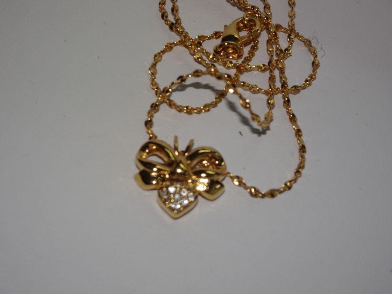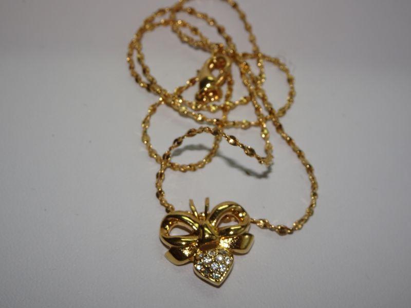 Gold Tone Bumble Bee Necklace, Rhinestone