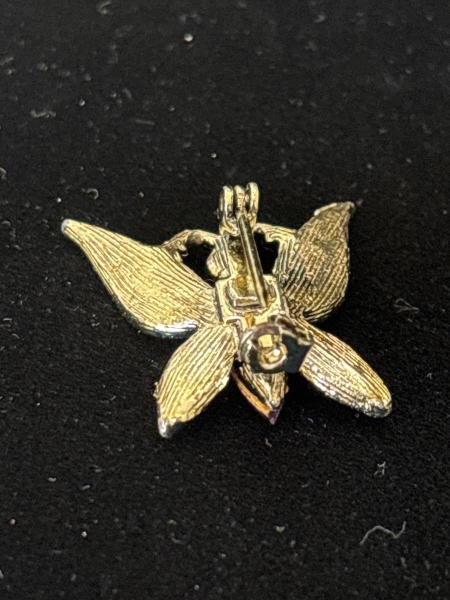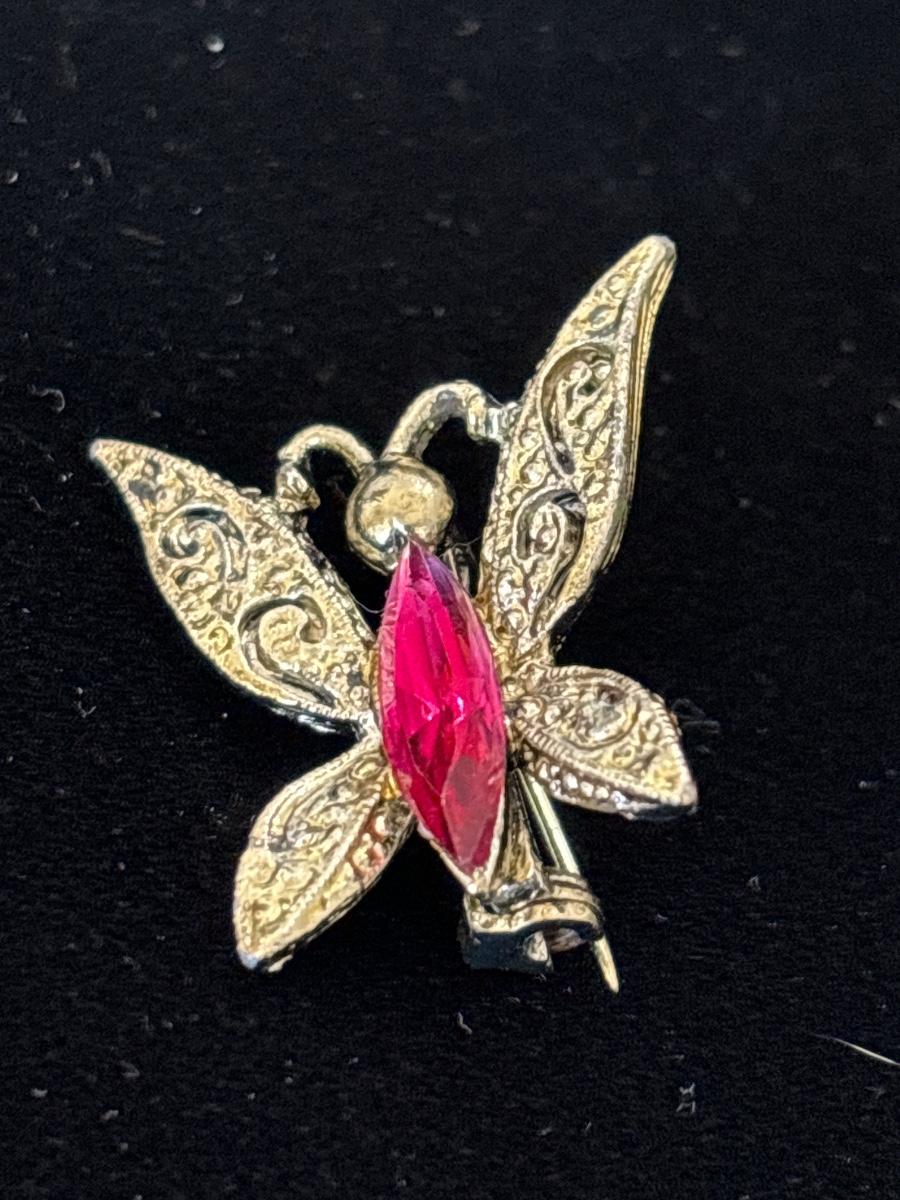 Gold tone butterfly with pink gem