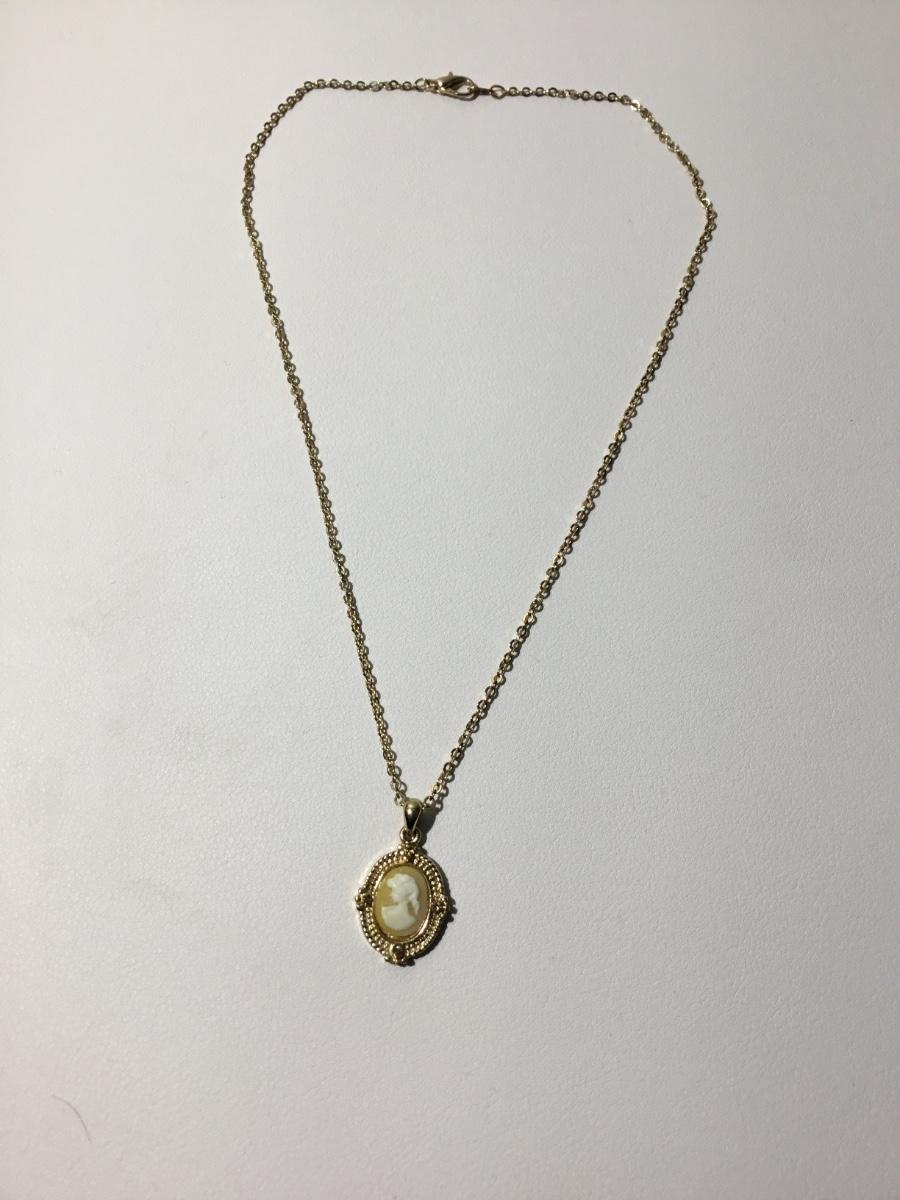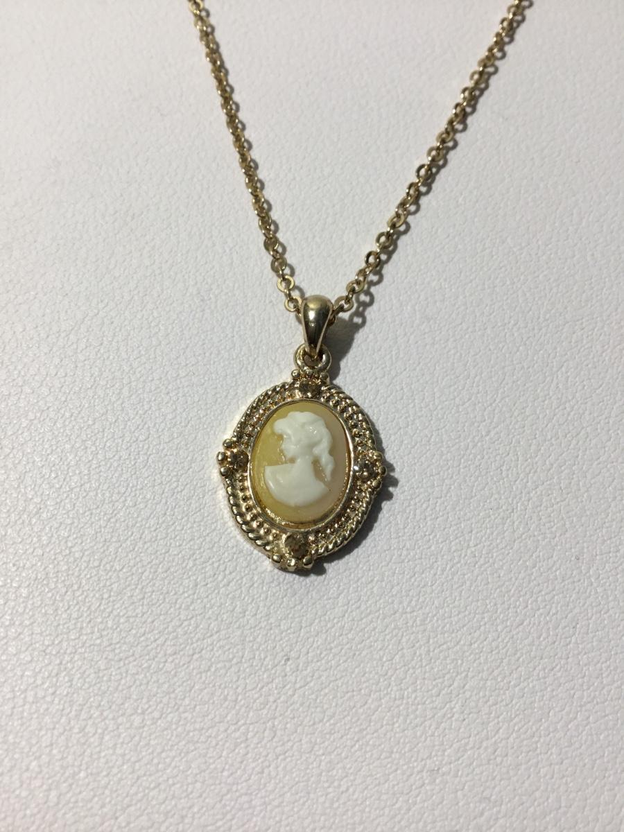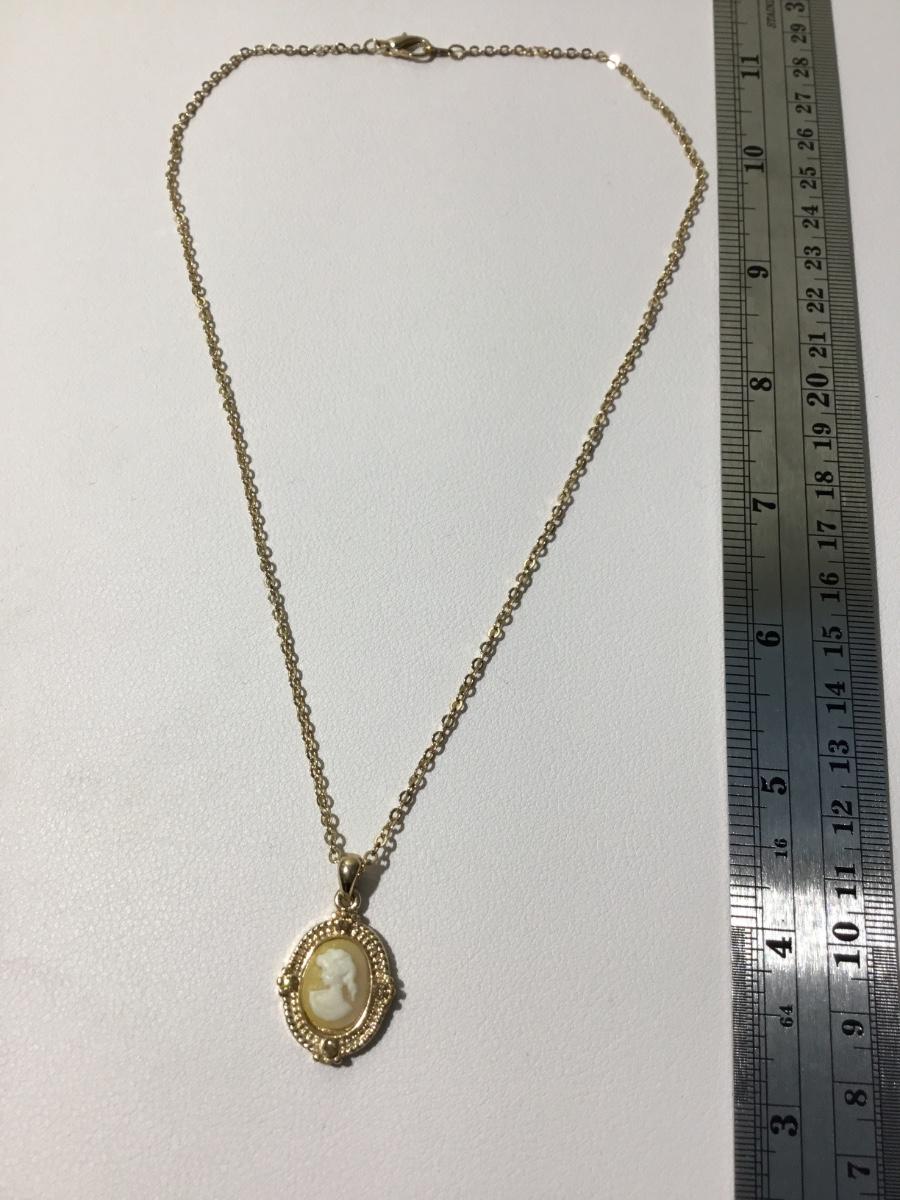 Gold tone Cameo lady fashion necklace vintage