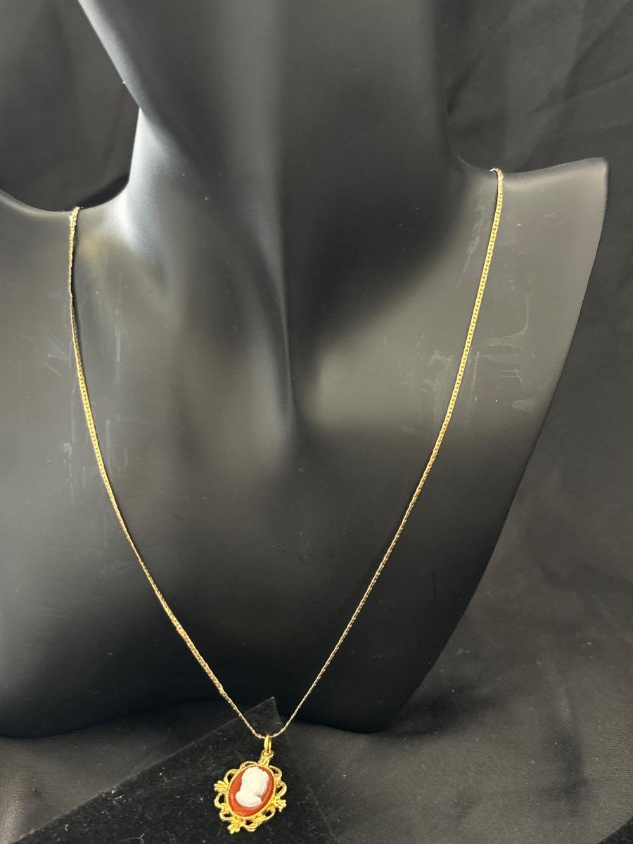 Gold tone cameo women necklace