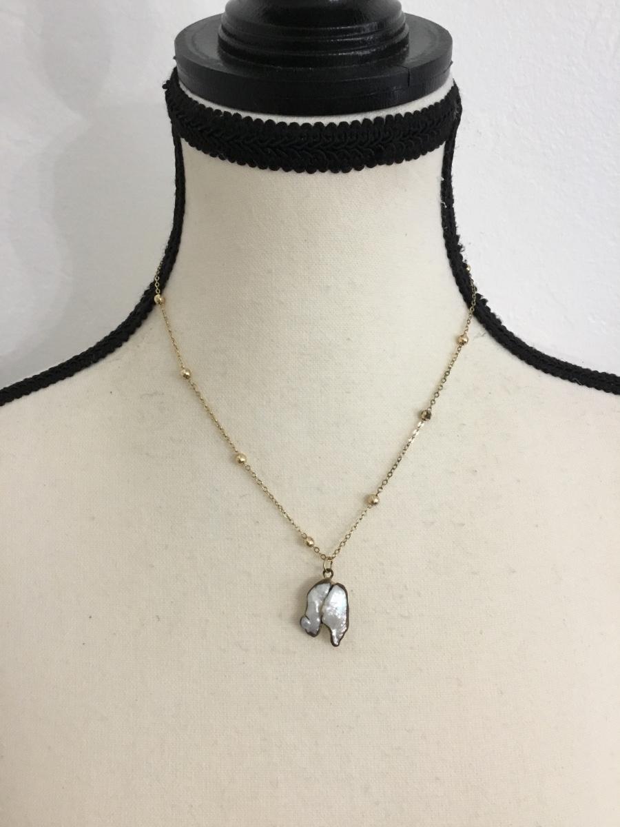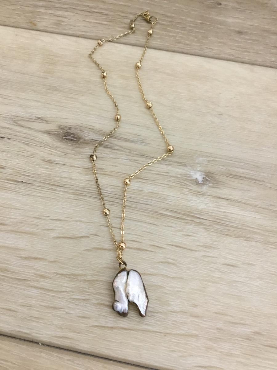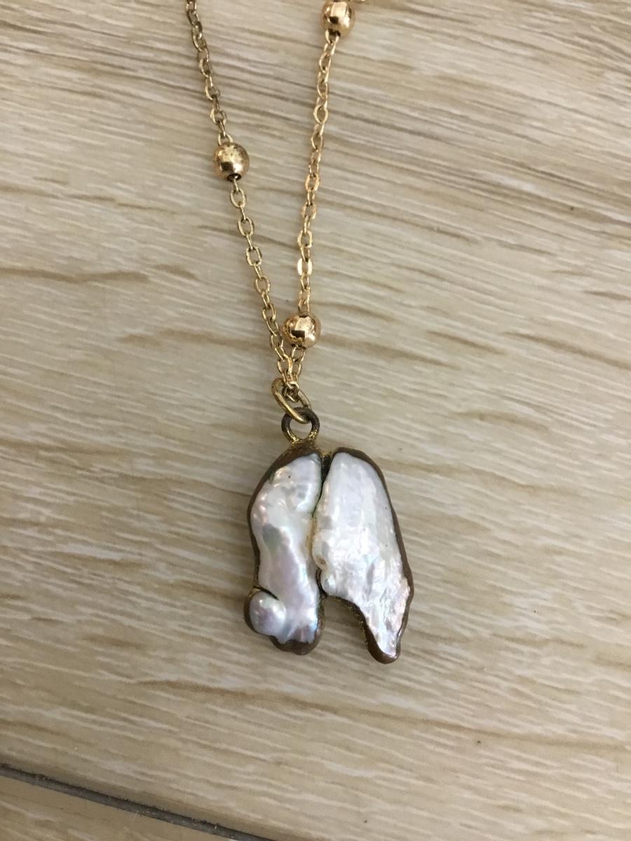 Gold tone, chain necklace with mother of pearl pendant