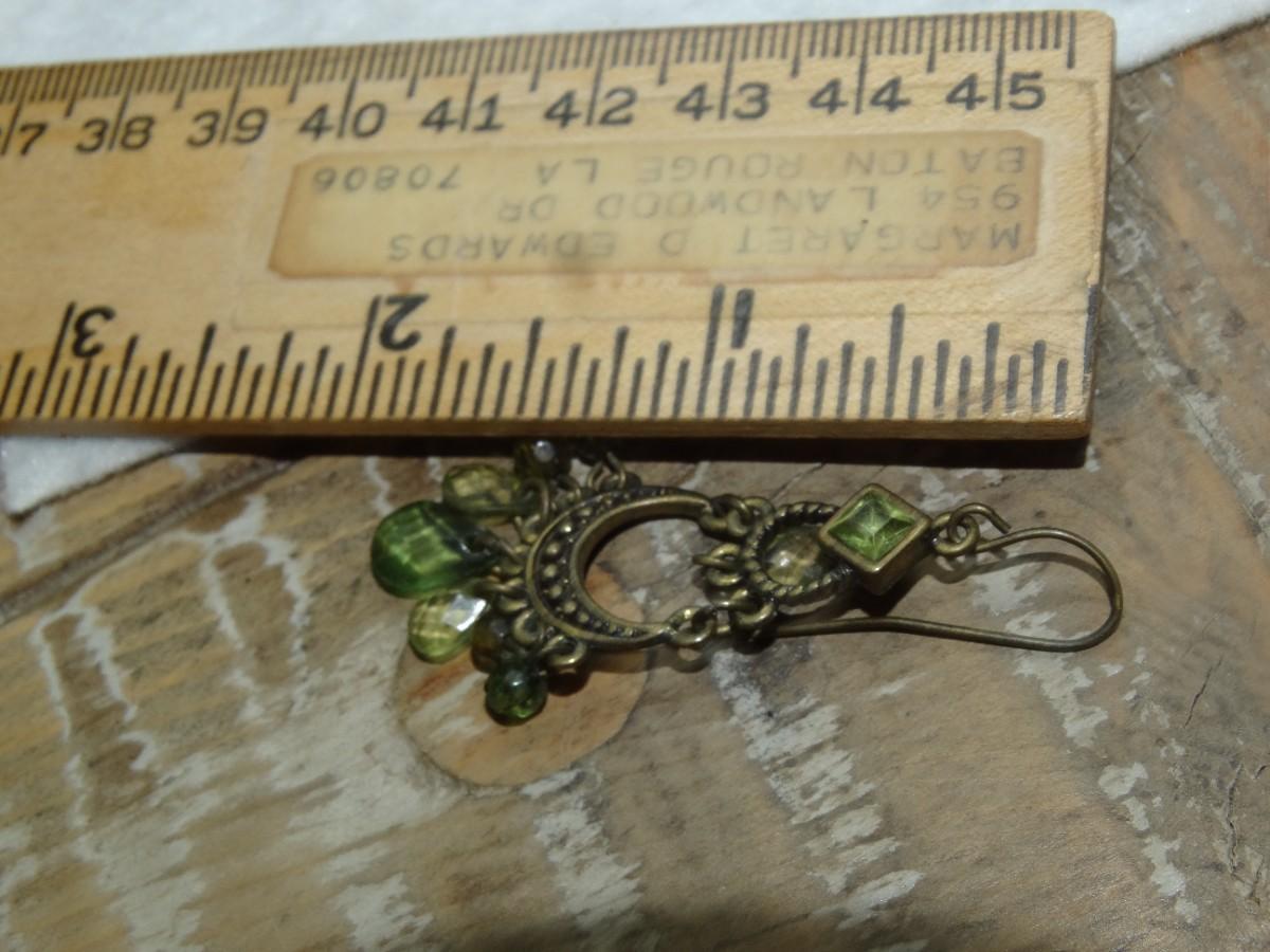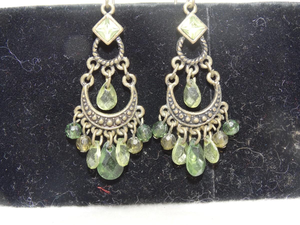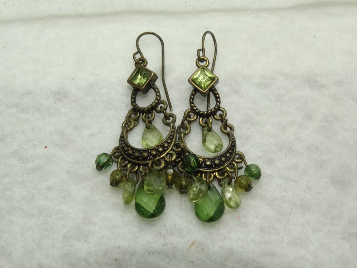 Gold Tone Chandelier Green Dangle Drop Earrings