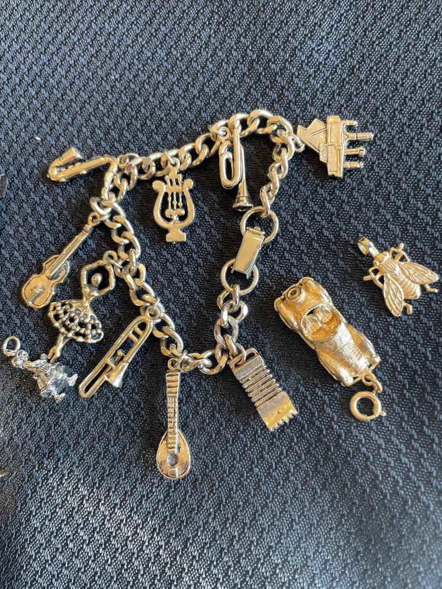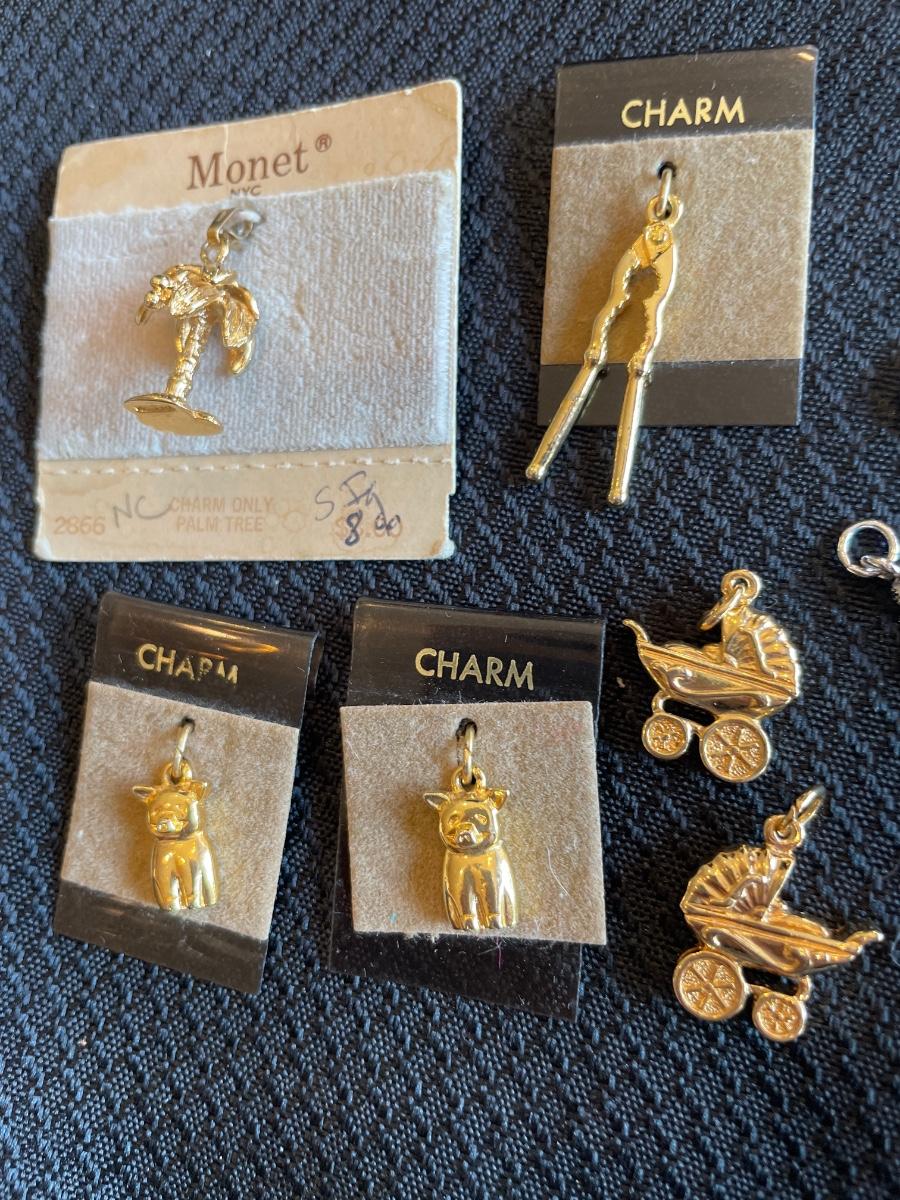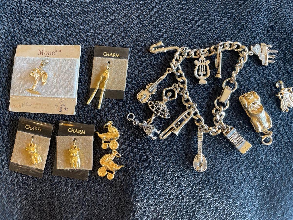 Gold tone charm bracelet and charms