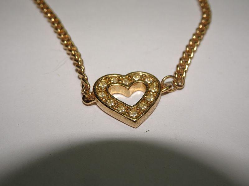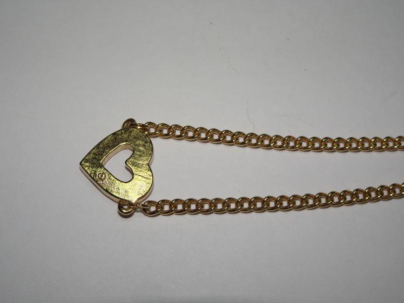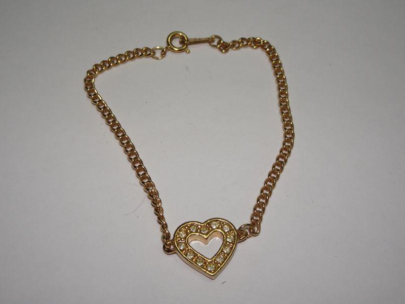Gold Tone Childs Heart Bracelet, Rhinestone Heart