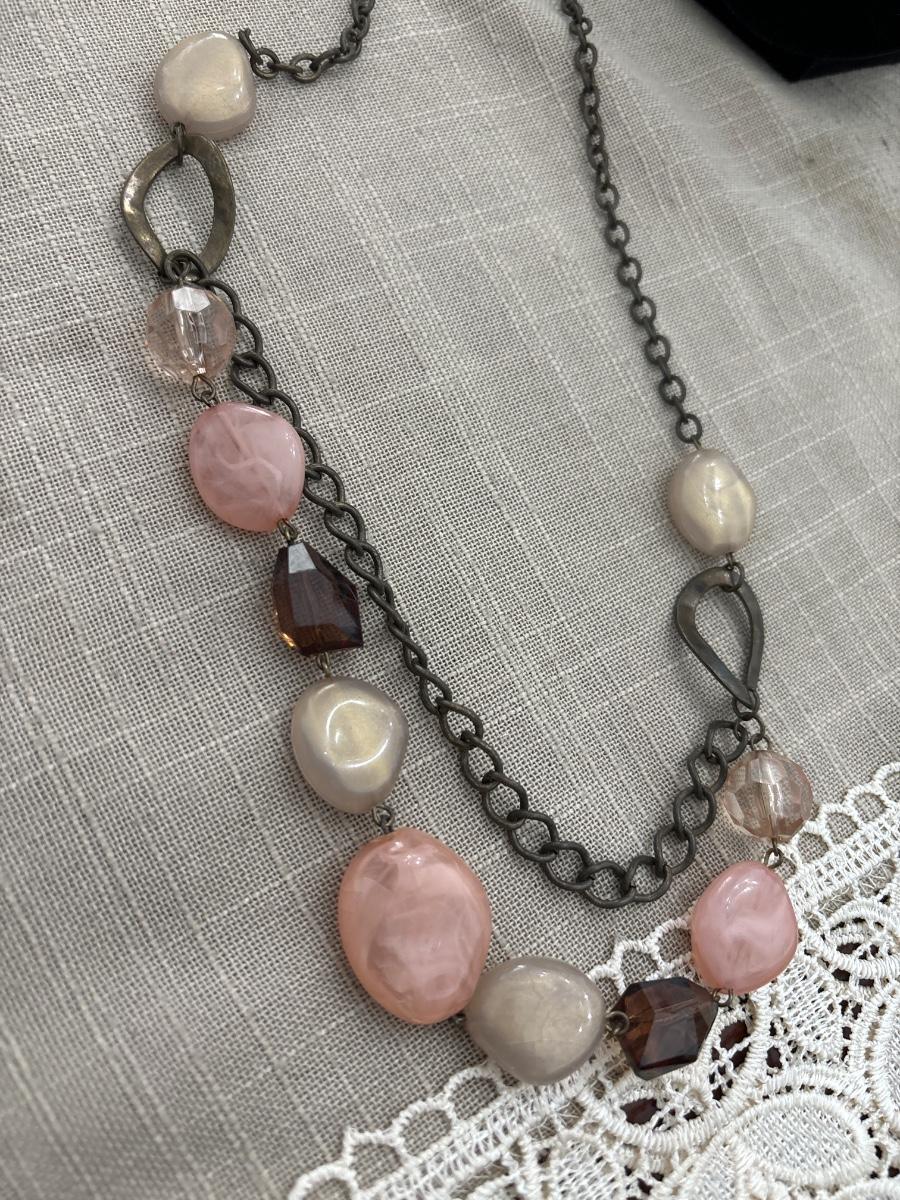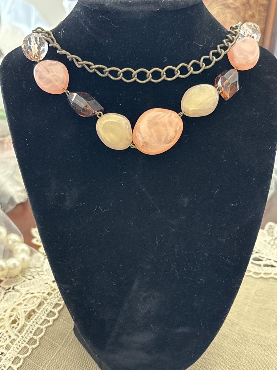 Gold tone choker and rocks and pearl like necklace