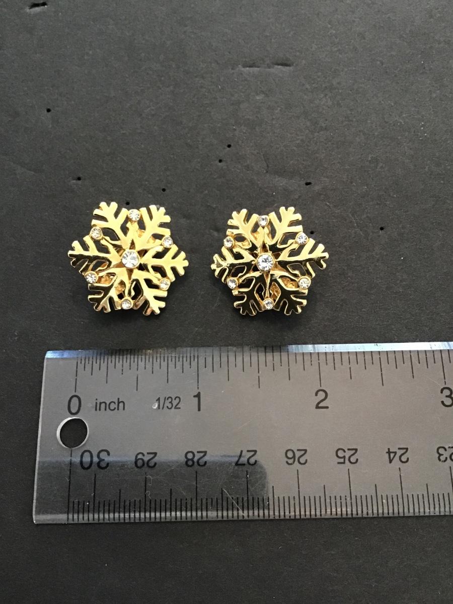 Gold tone, Christmas snowflake earrings. Please see attached photos.