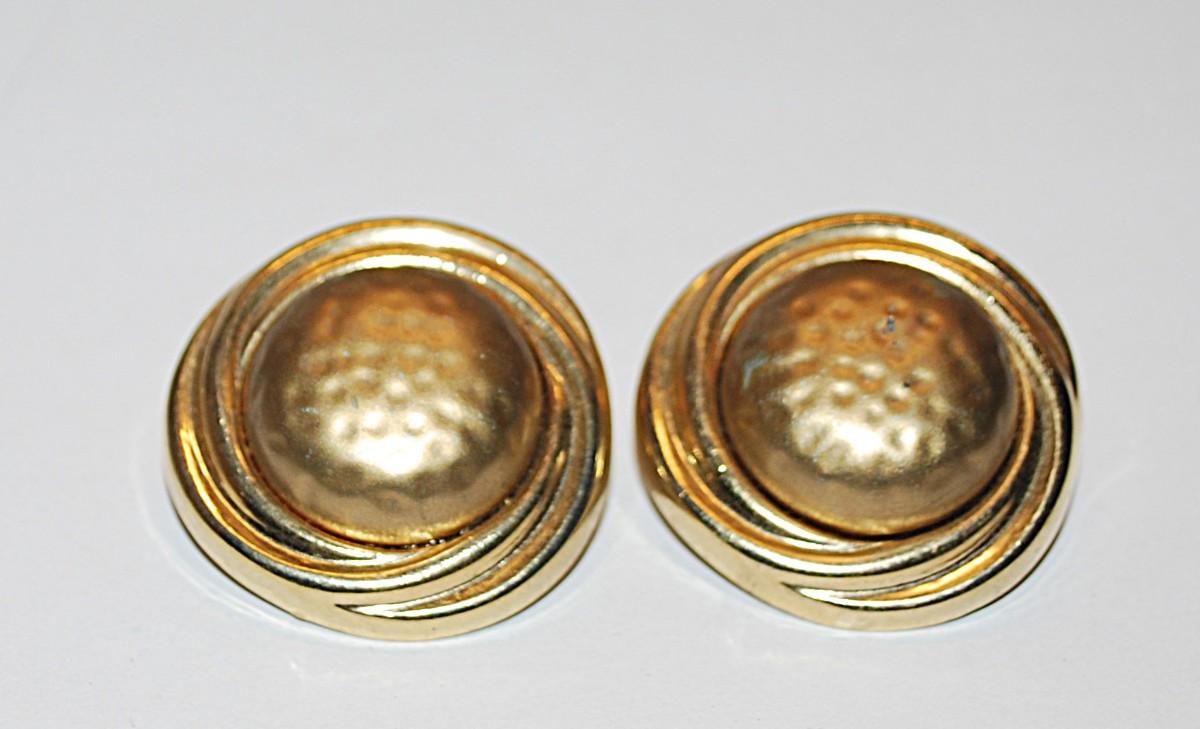 Gold Tone Circle EARRINGS with "Dented" Centers and Snap-On Clasps