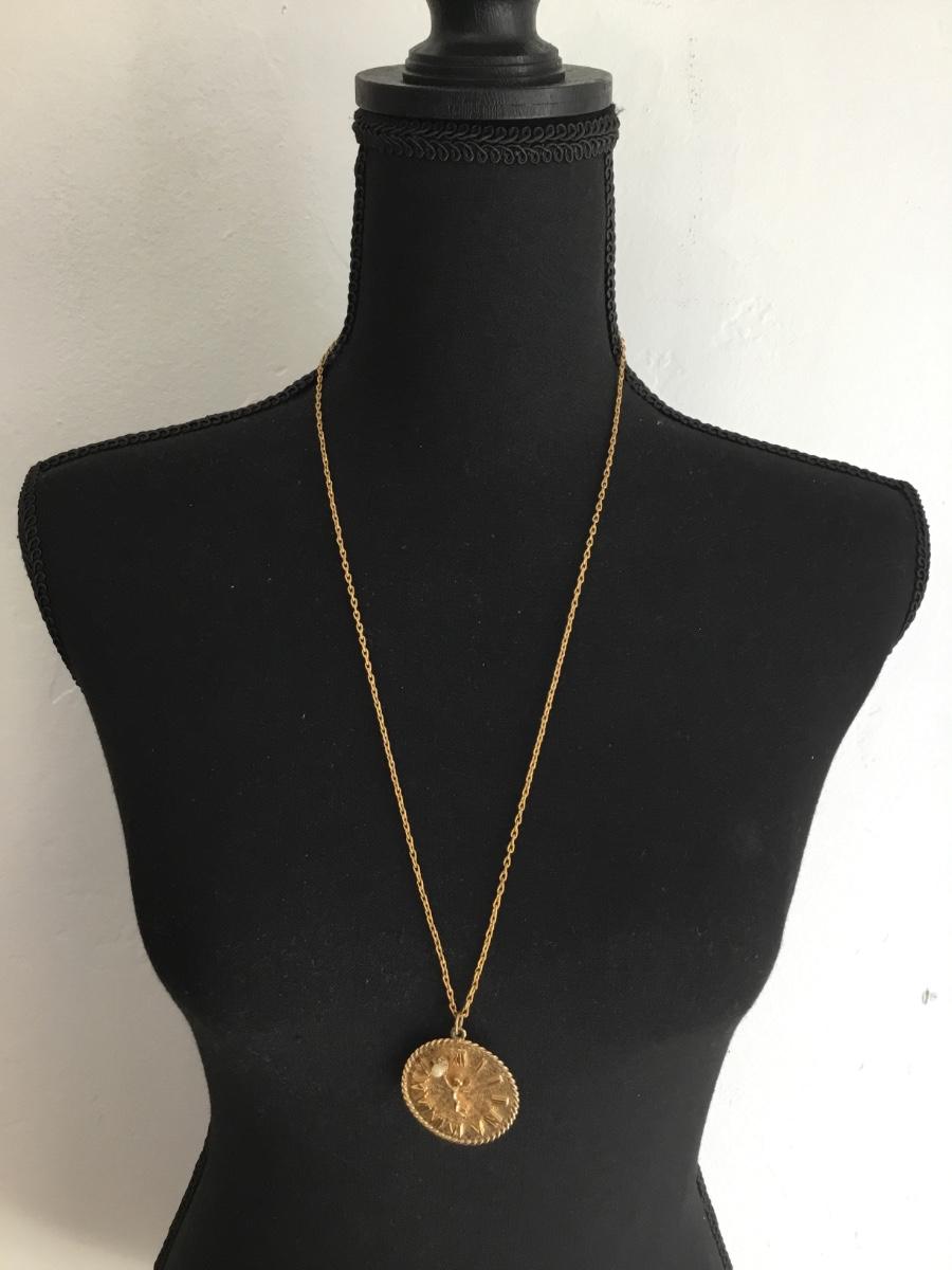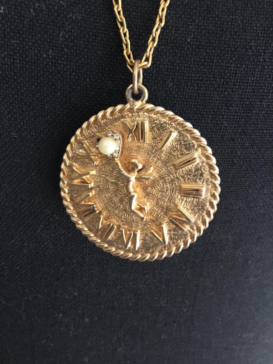 Gold tone clock pendant and chain necklace