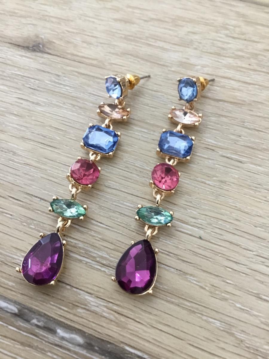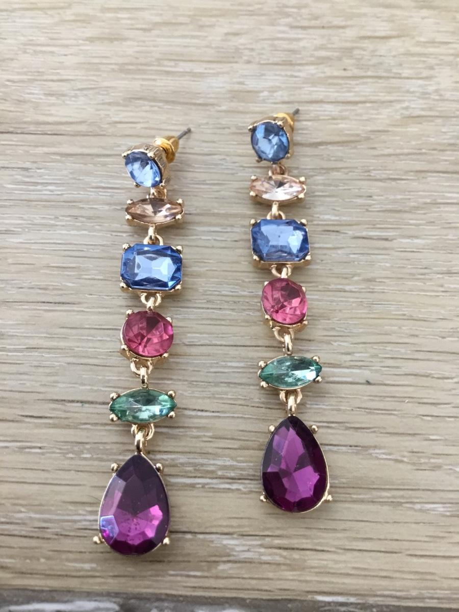 Gold tone colorful dangle earrings