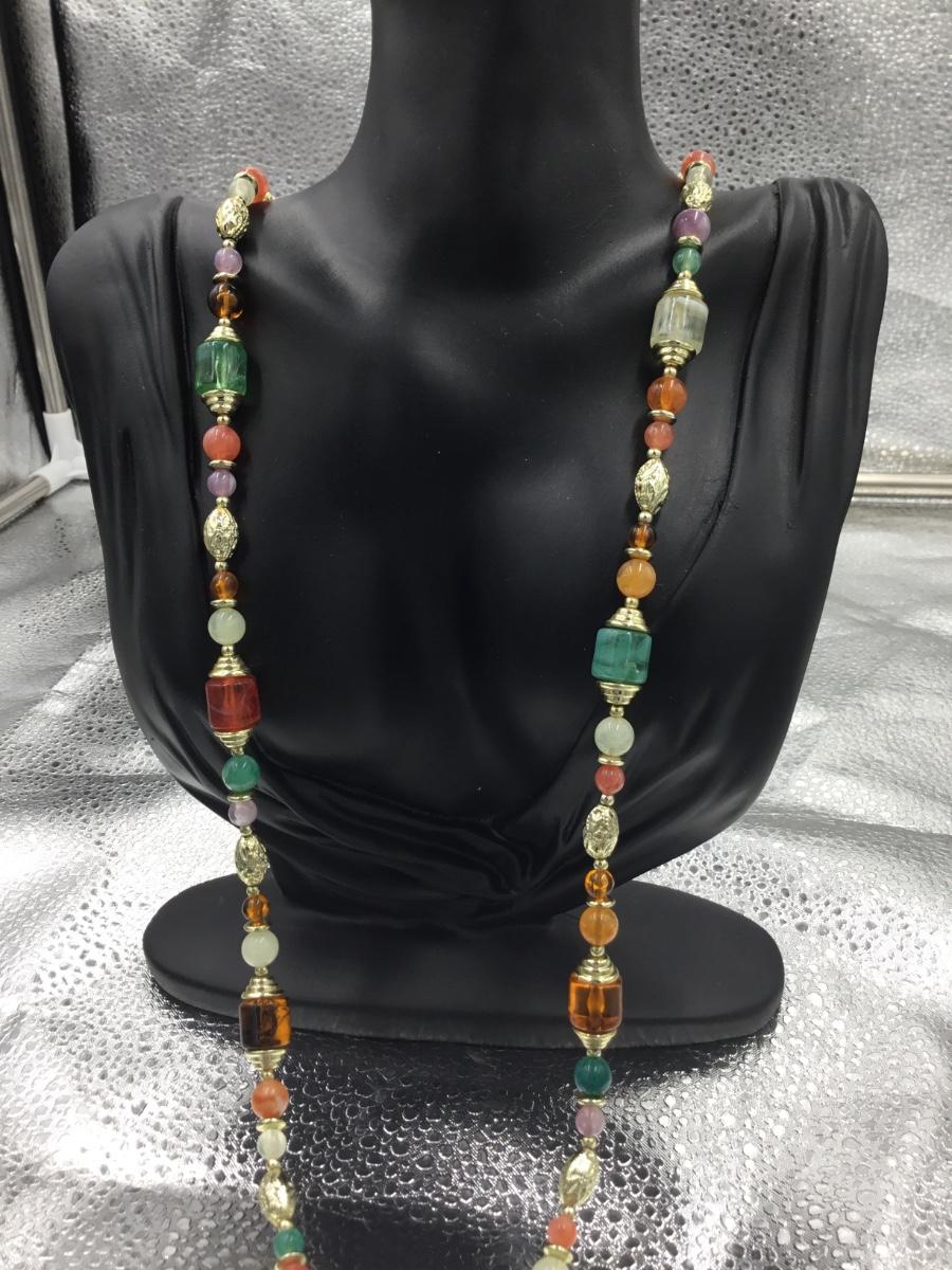 Gold tone colorful fashion long necklace