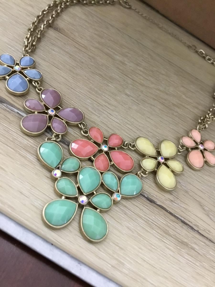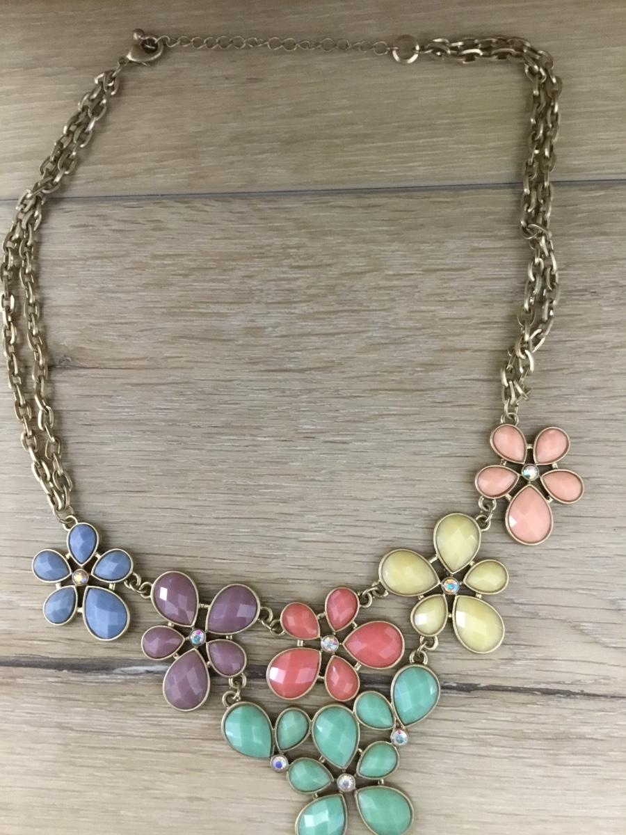 Gold tone colorful flower necklace
