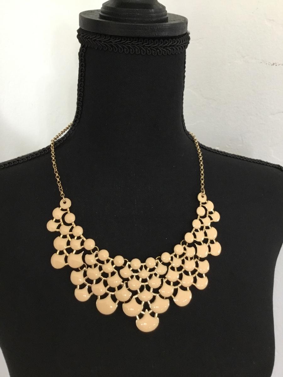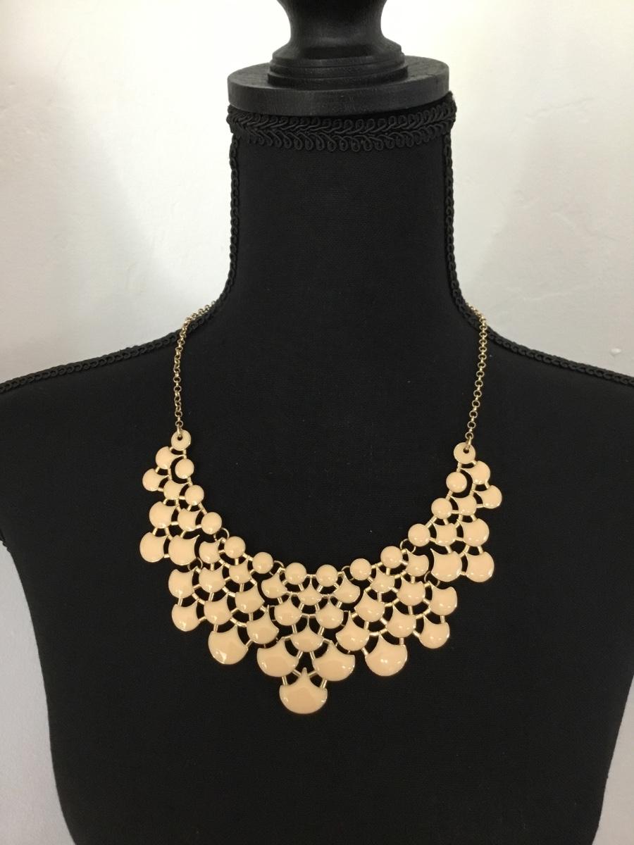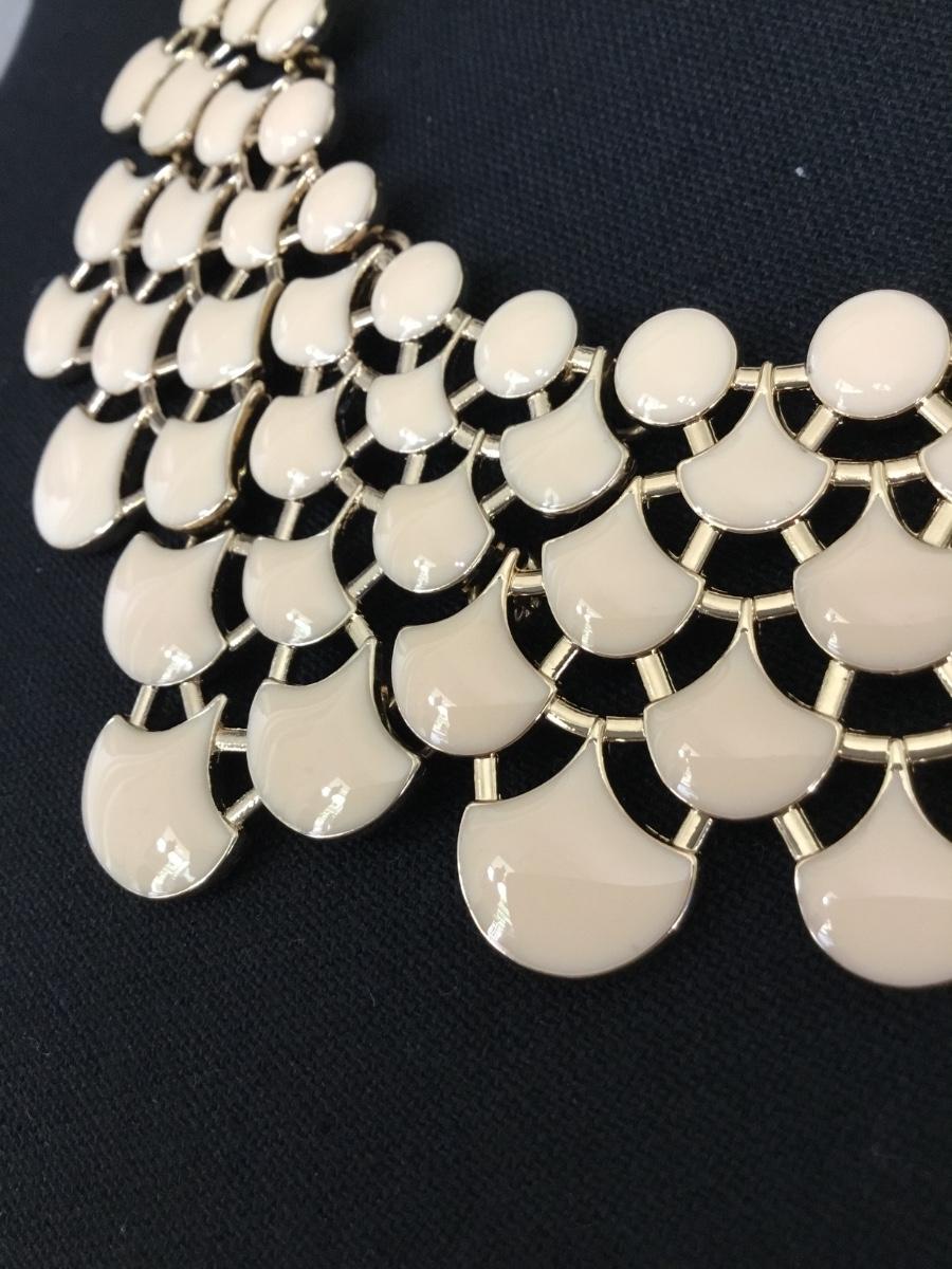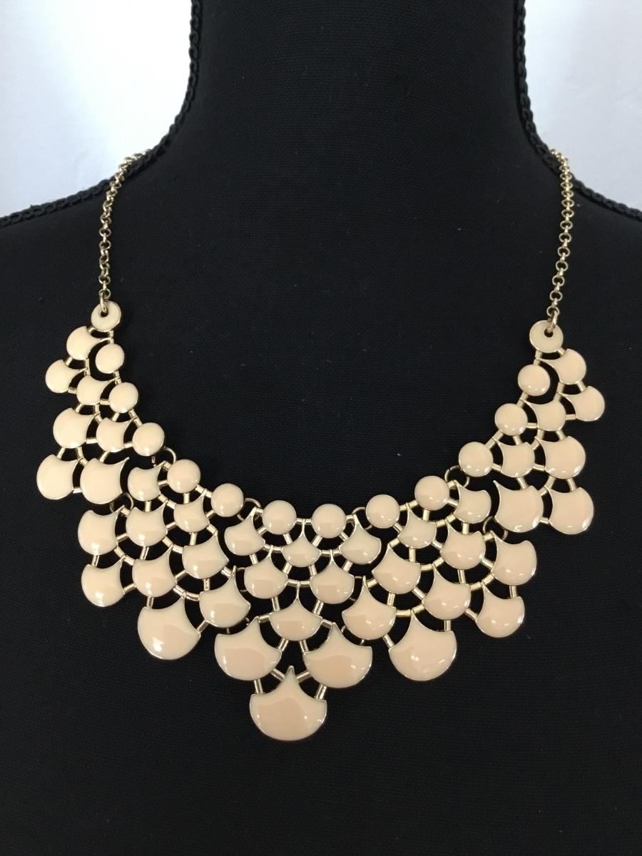 Gold tone cream bib statement necklace