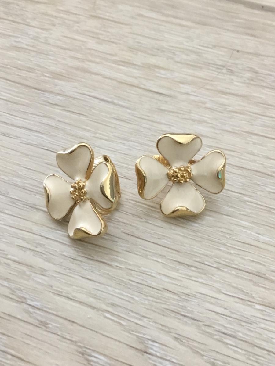 Gold tone crème vintage floral clip on earrings