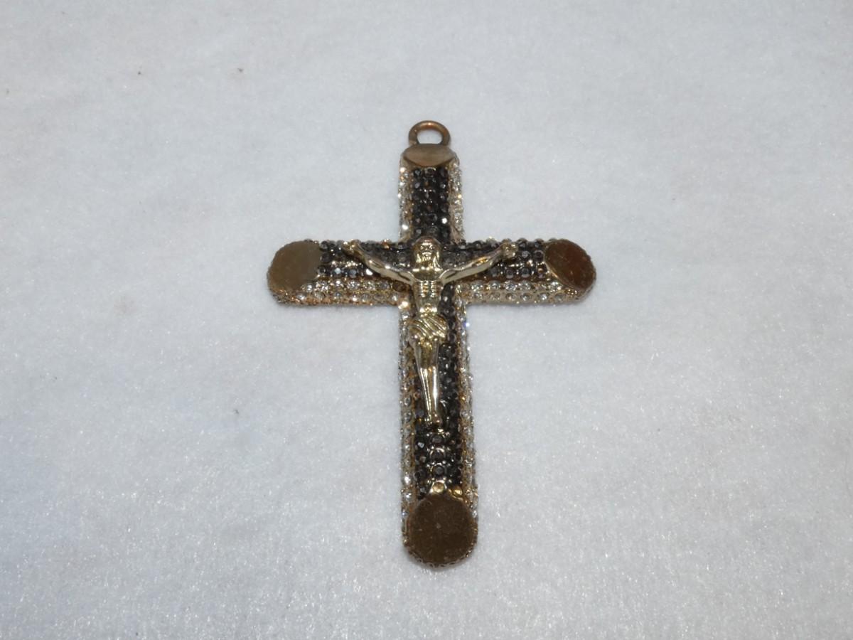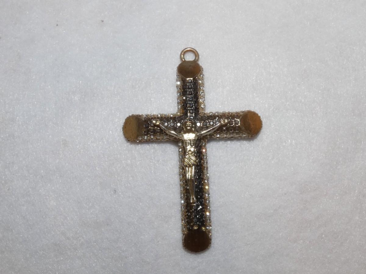 Gold Tone Crucifix Statement Pendant