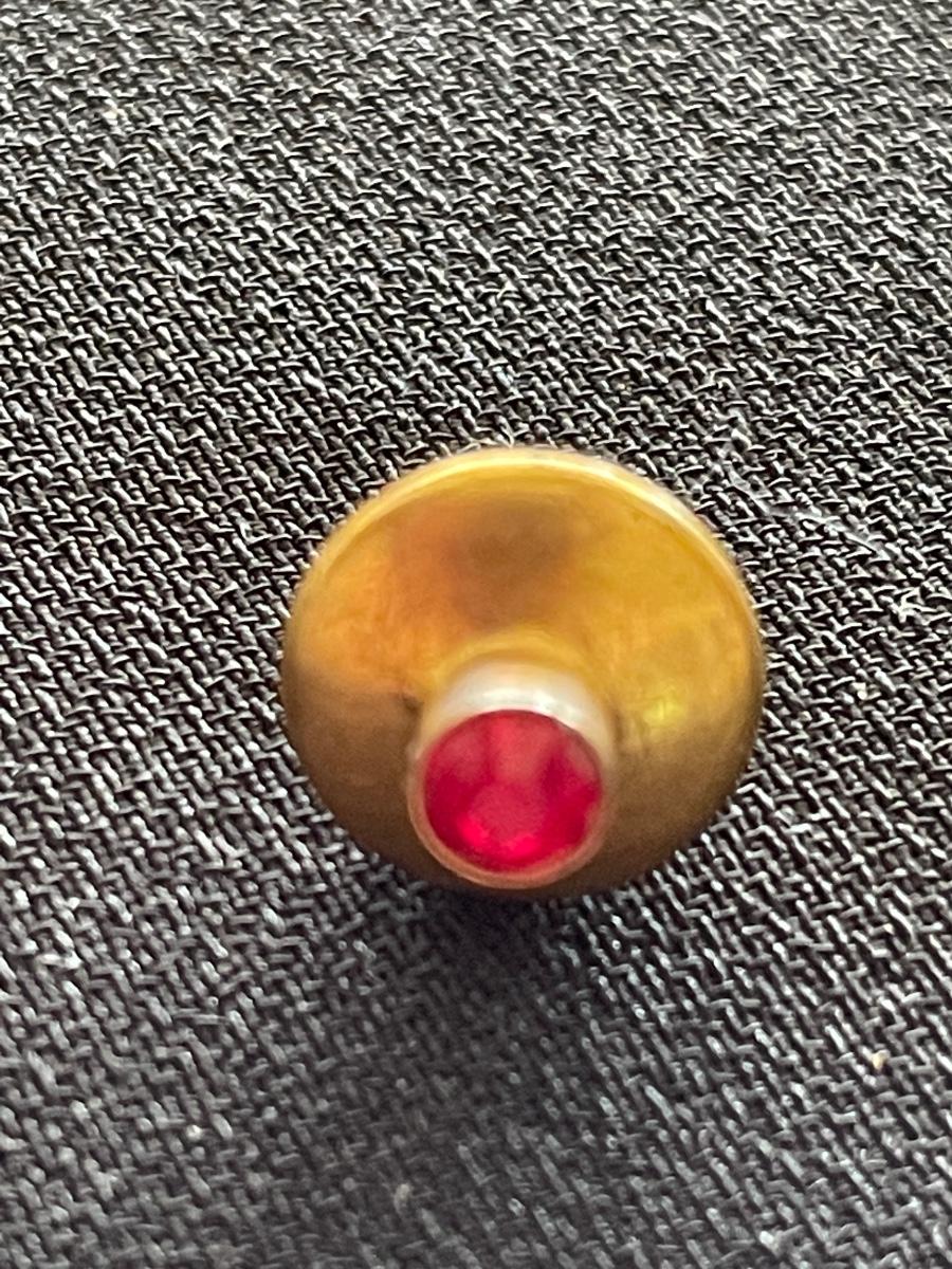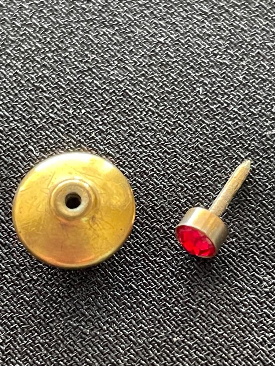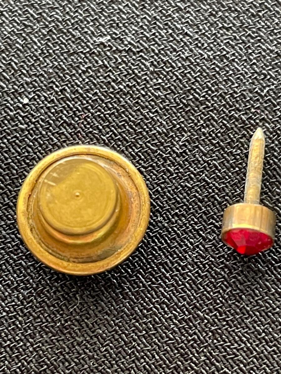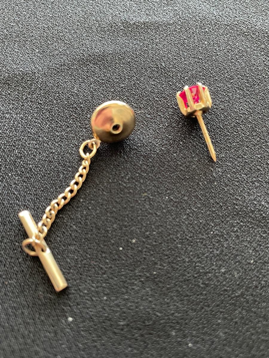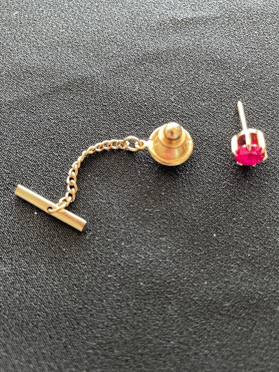 2 GOLD TONE TIE TACK W/RUBY LIKE STONE