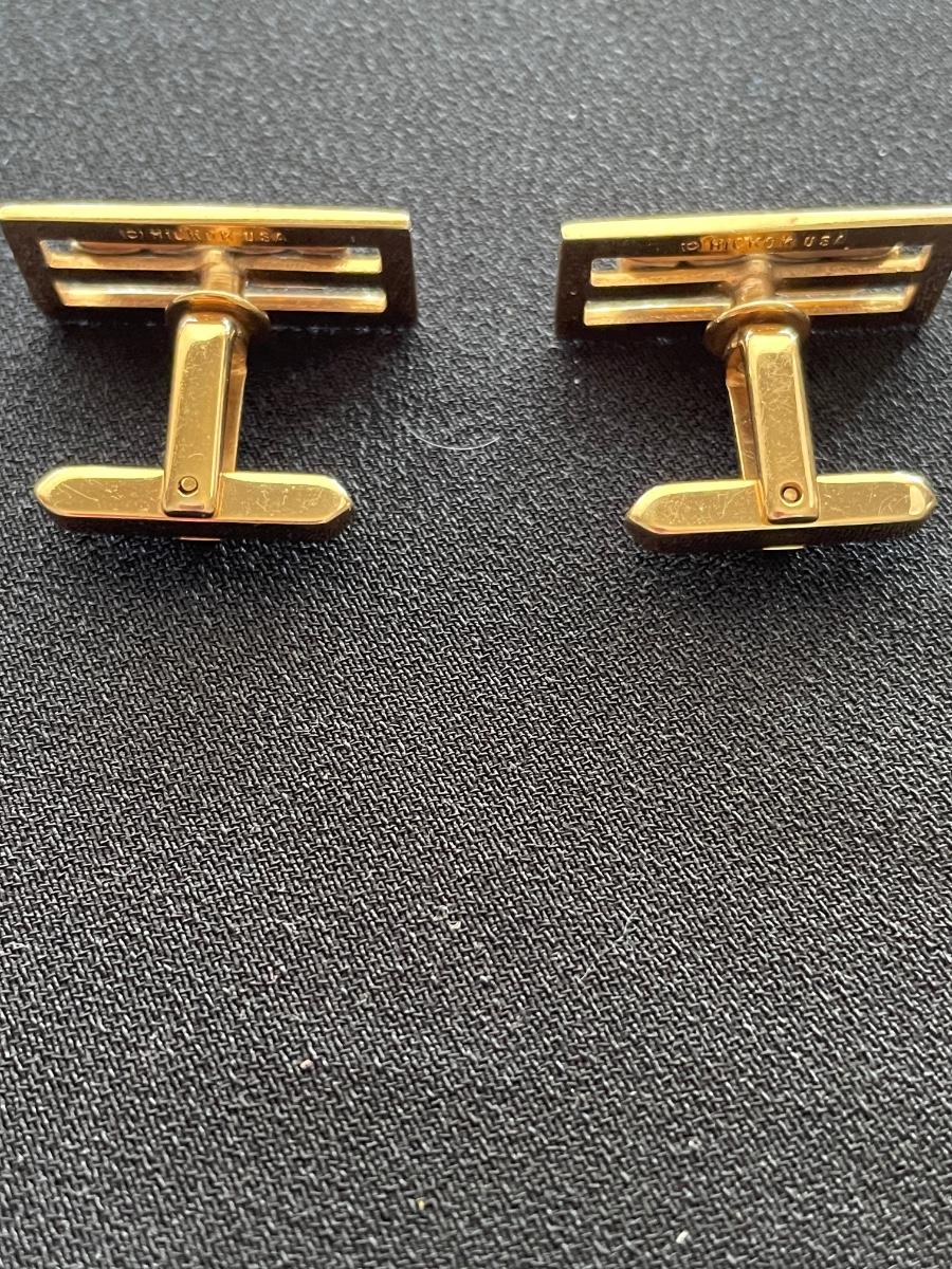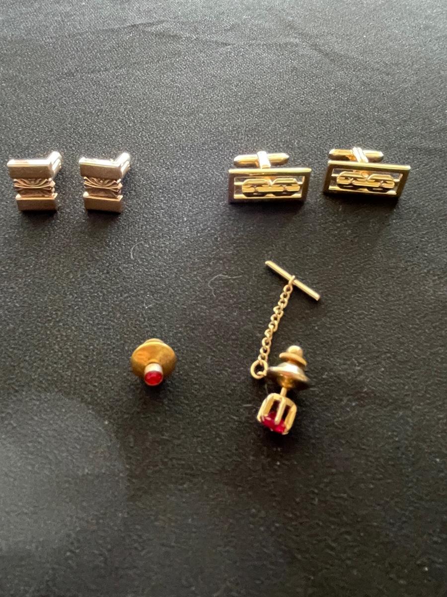 GOLD TONE CUFF LINKS AND TIE TACKS